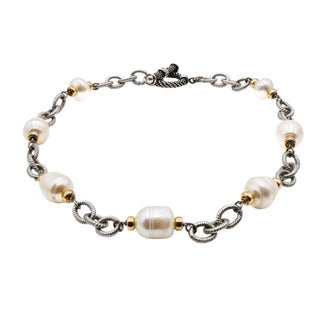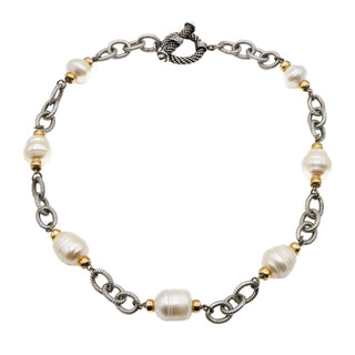 Sterling Silver Baroque Pearl 16 Inch Necklace With Gold Plated Accents