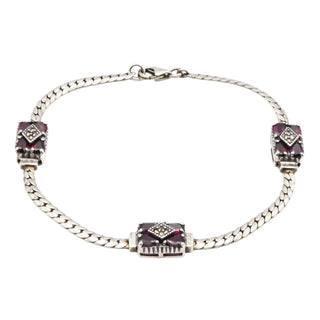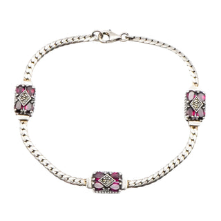 Vintage Sterling Silver Garnet Marcasite January Birthstone Bracelet 7.5 Inches