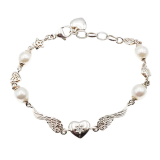 Thomas Sabo Sterling Silver Angel Wing Bracelet with Genuine Freshwater Pearls