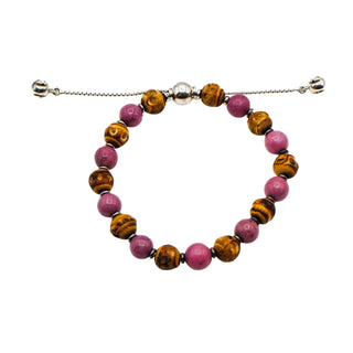 Vintage Authentic Gucci Rhodonite & Bamboo Beaded Sterling Silver Adjustable Bracelet