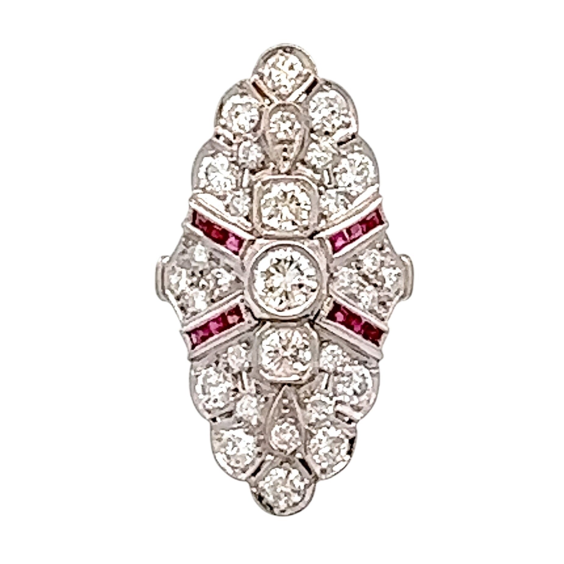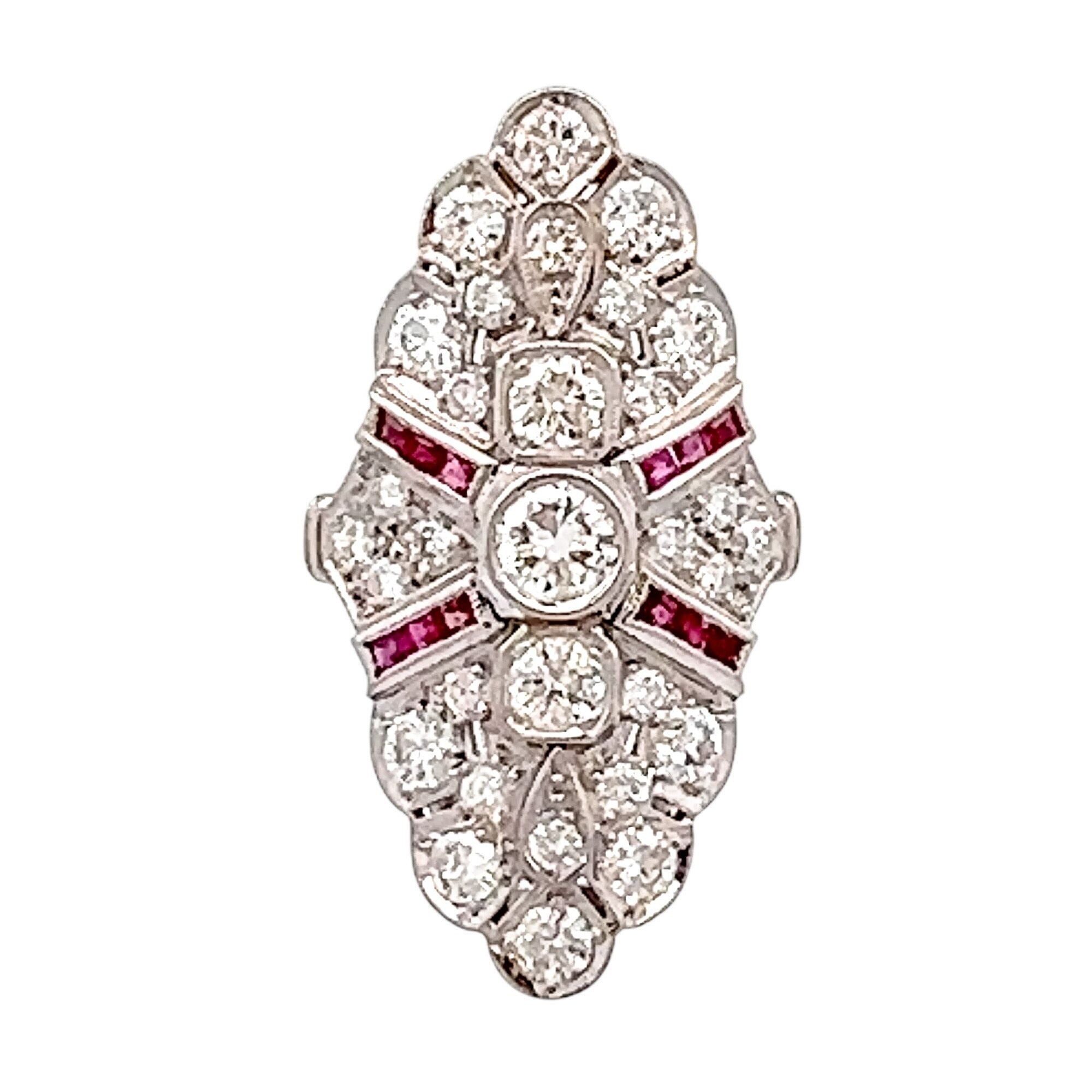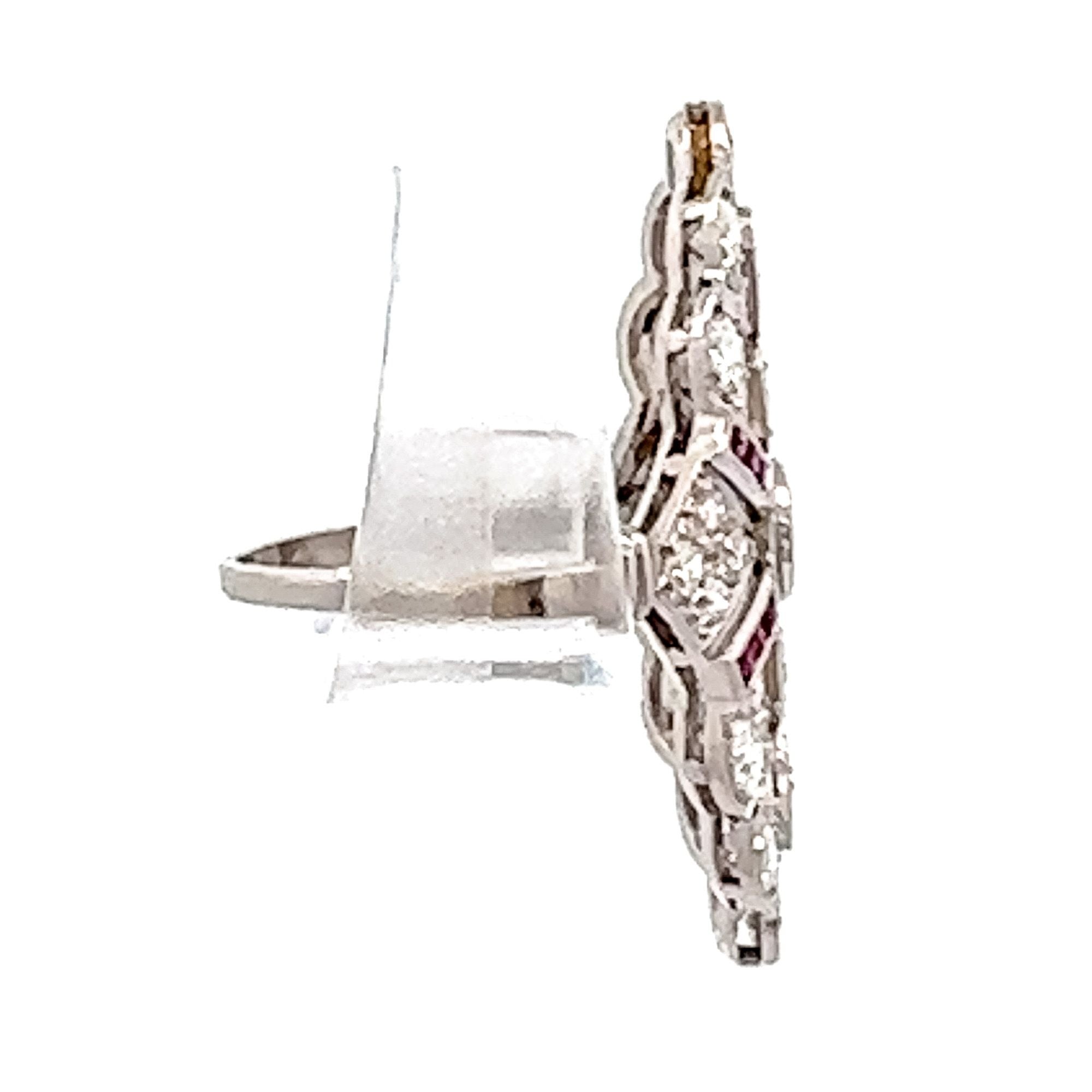 Art Deco Platinum Diamond & Ruby Cocktail Ring | Vintage Glamour, Modern Confidence
