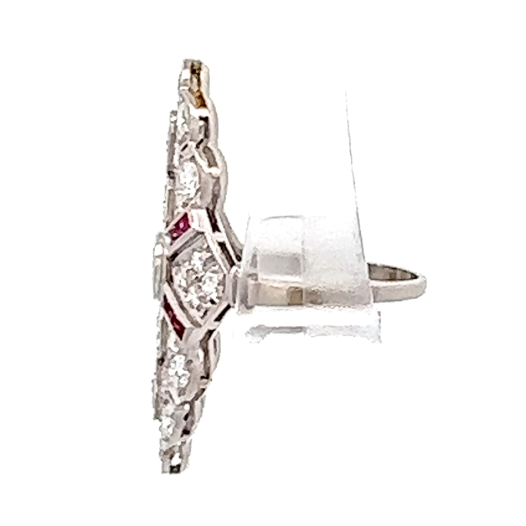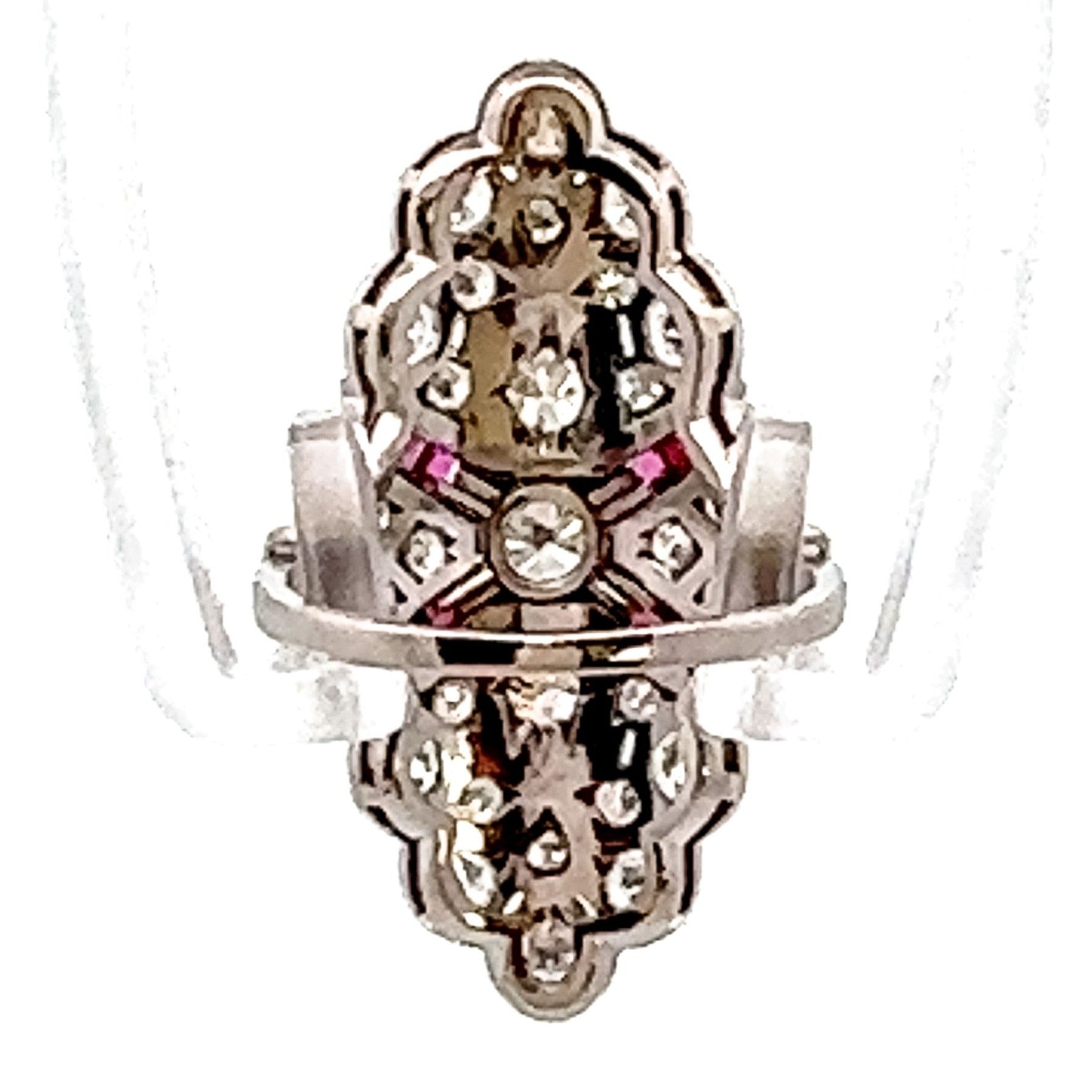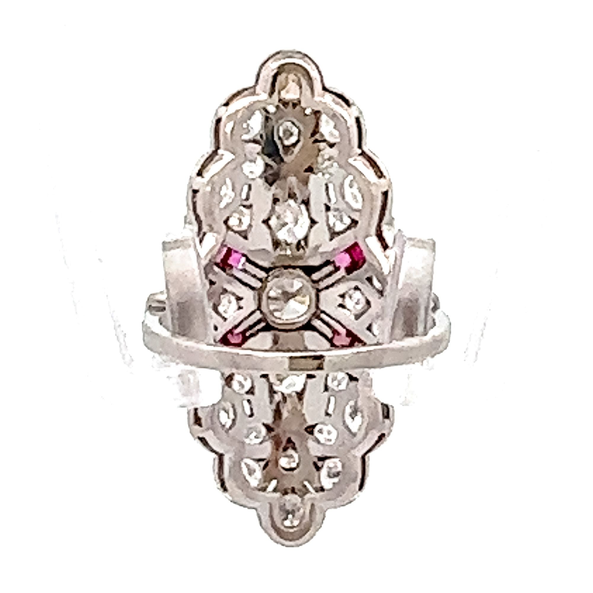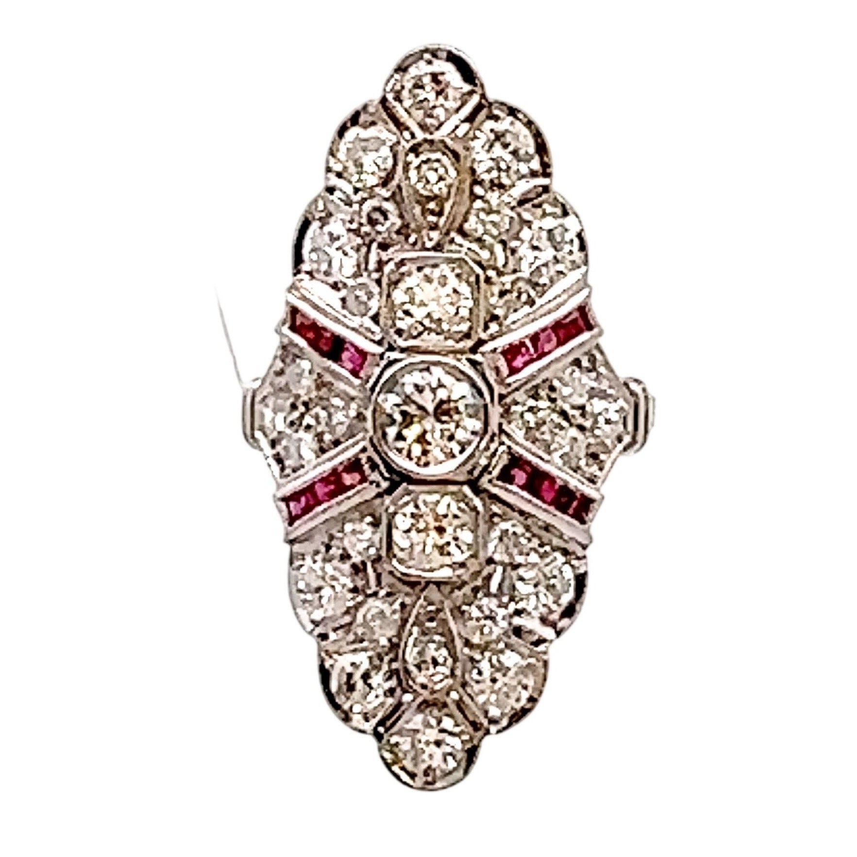 Art Deco Platinum Diamond & Ruby Cocktail Ring | Vintage Glamour, Modern Confidence