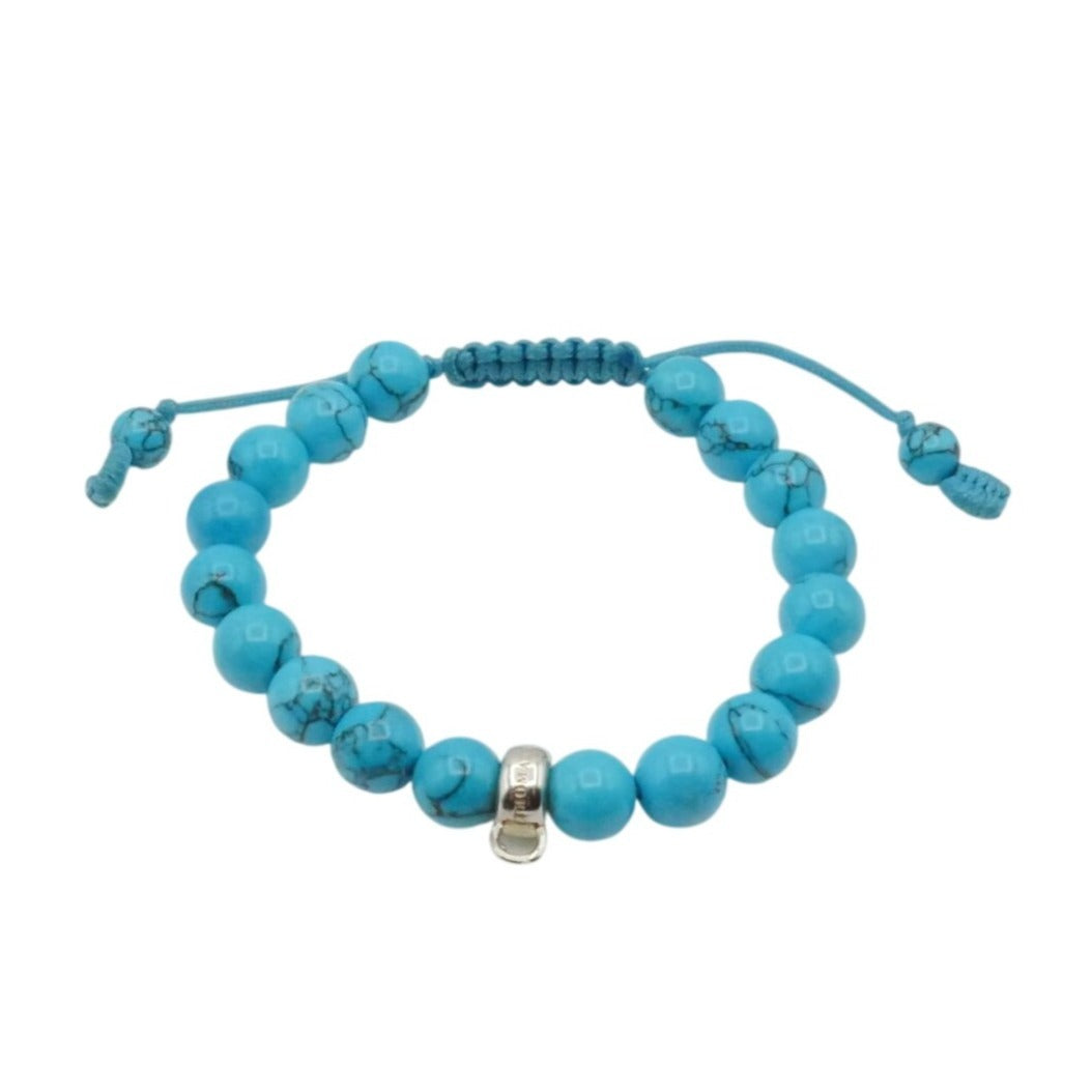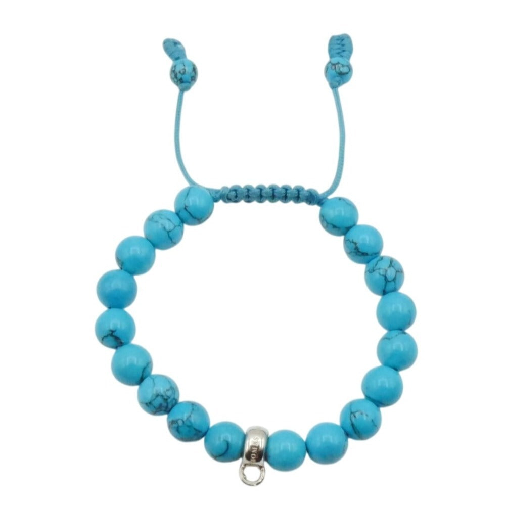 This Thomas Sabo charm carrier bracelet features vibrant imitation turquoise beads paired with a sleek adjustable cord design. A versatile and stylish base bracelet, perfect for wearing alone or customizing with your favorite Thomas Sabo charms.