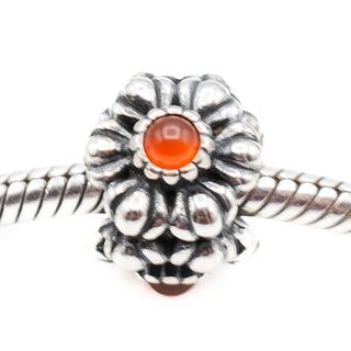 Pandora July Birthday Blooms Sterling Silver Charm With Carnelian Retired