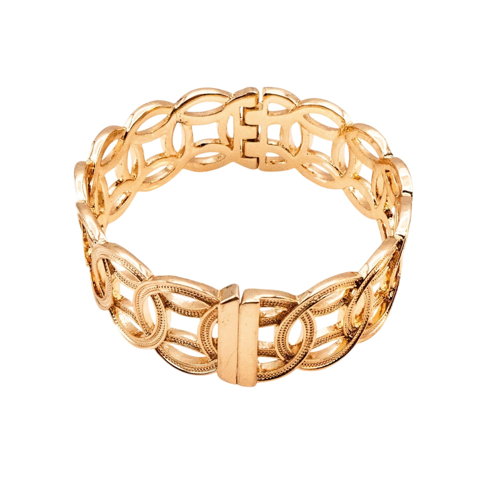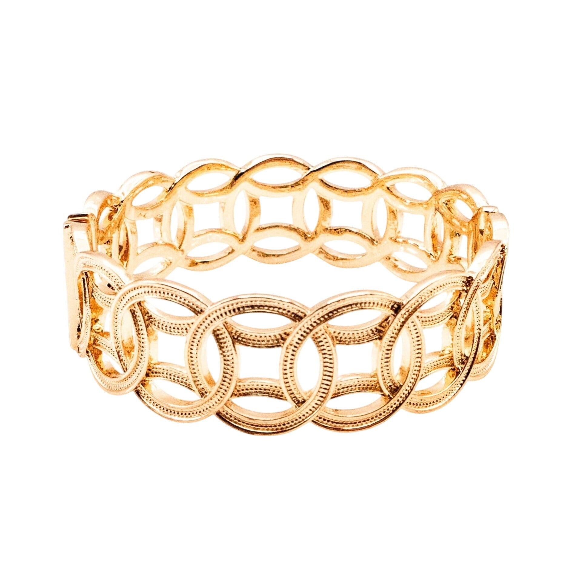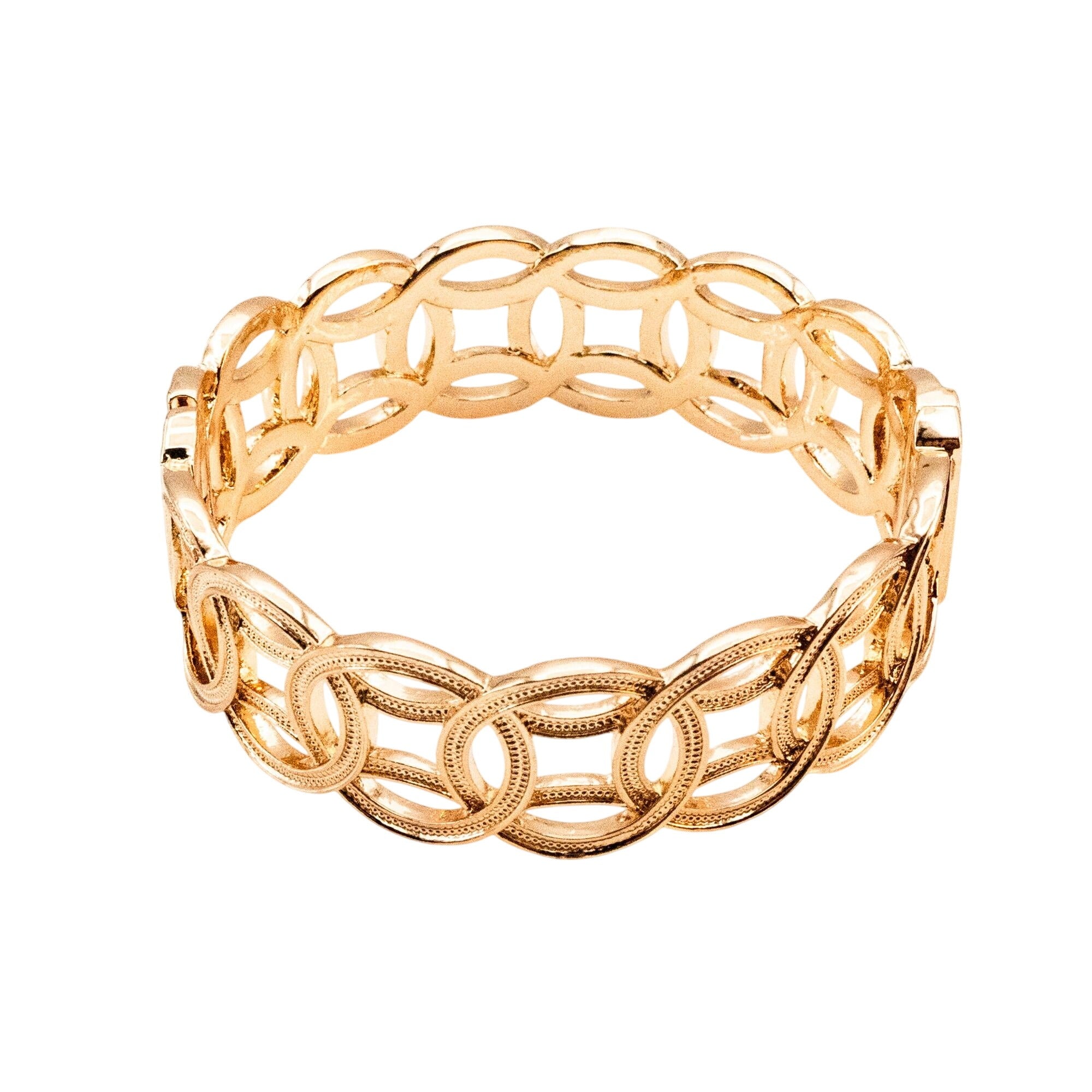 Simple yet elegant, this gold tone bangle bracelet features sleek infinity links, representing endless love and timeless style. Measuring 7.1 inches and closed with a magnetic clasp, it offers a comfortable fit and a polished finish that catches the light beautifully. Perfect for everyday wear or as a thoughtful gift, this bracelet adds a subtle touch of sophistication to any look.