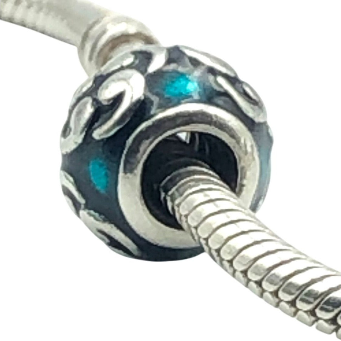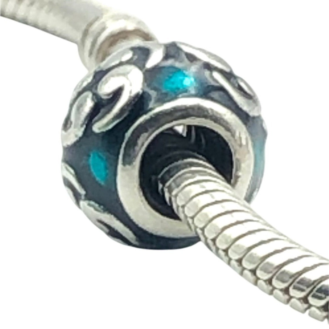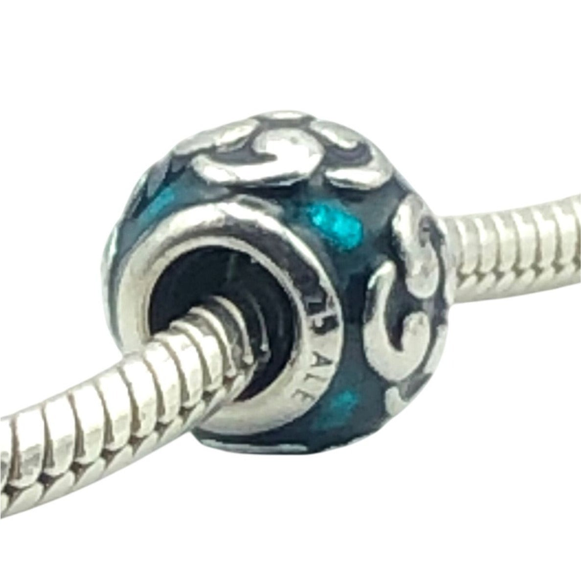 Authentic PANDORA Blue Zen 925 ALE Sterling Silver Charm With Blue Enamel Bead 790491EN08 - Retired. This is a very popular charm with beautiful turquoise enameling and a flowing sterling silver design.
