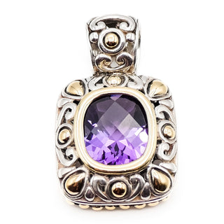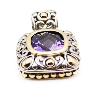 John Hardy Amethyst Enhancer Pendant Sterling Silver & 18K Gold 5.5 Ct Checkerboard Cut Vintage
