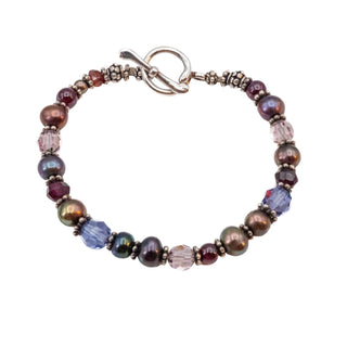Vintage Multi-Color Mother of Pearl & Cultured Pearl Beaded Bracelet 7.5 Inches