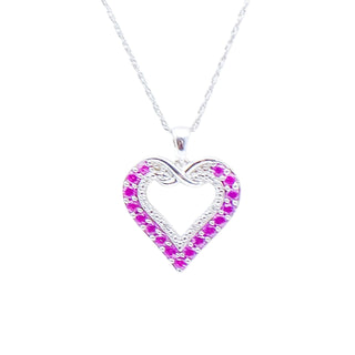 Sterling Silver Lab Created Ruby And Diamond Heart Pendant Necklace