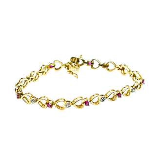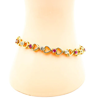 Ross Simmons Vermeil Heart Link Tennis Bracelet with Synthetic Rubies and Diamonds