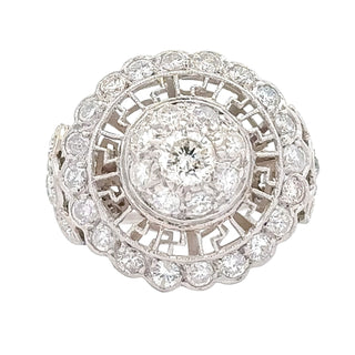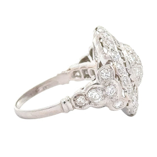 Art Deco 18K White Gold Diamond Halo Engagement Cocktail Ring Size 7.75