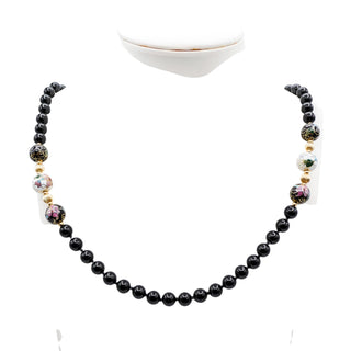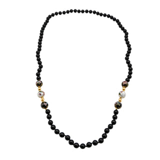 Vintage Black Onyx 12K Yellow Gold and Cloisonné Bead Necklace 31 Inches