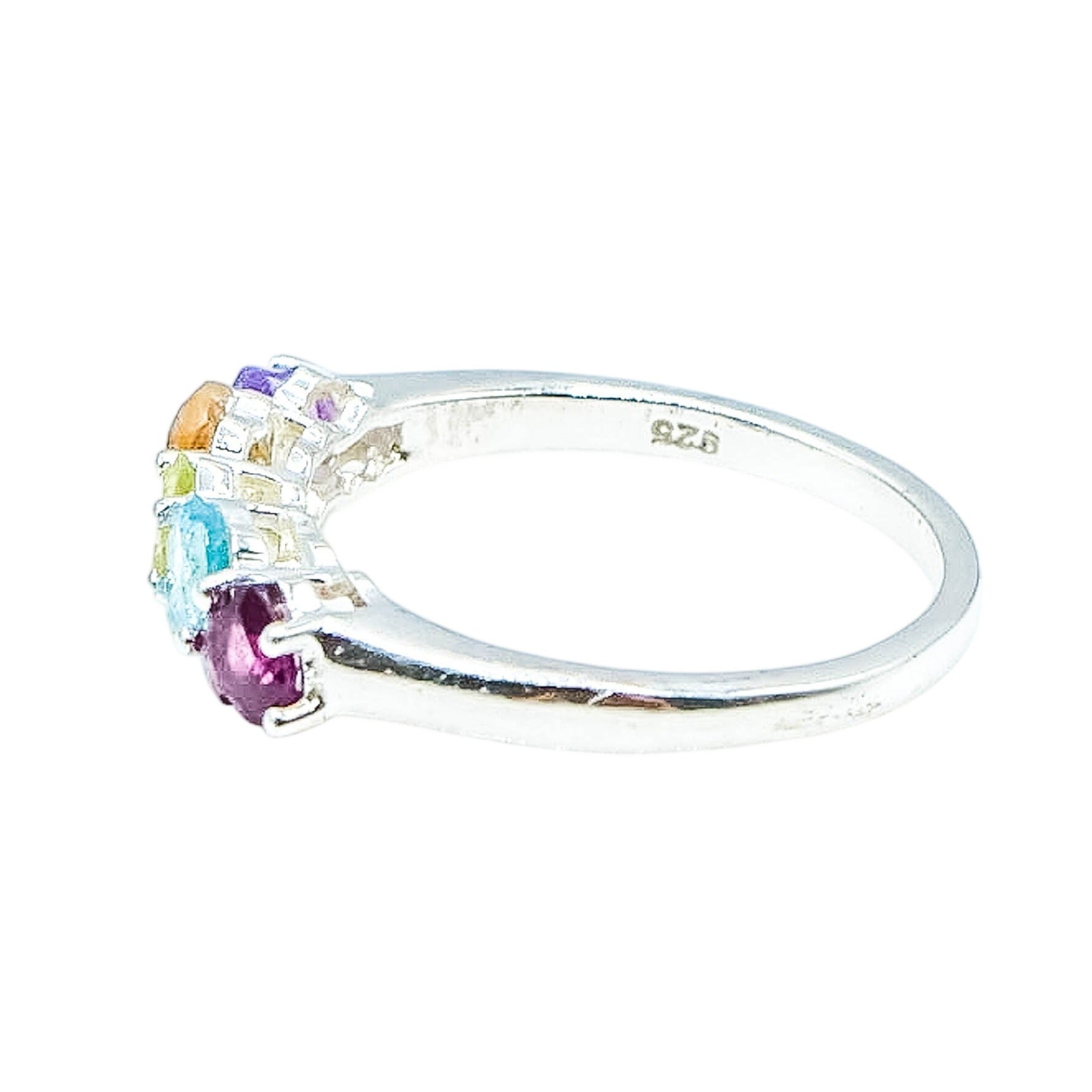 Sterling Silver Multi-Gemstone Heart Ring – Size 7 – Amethyst, Citrine, Topaz, Garnet, Peridot