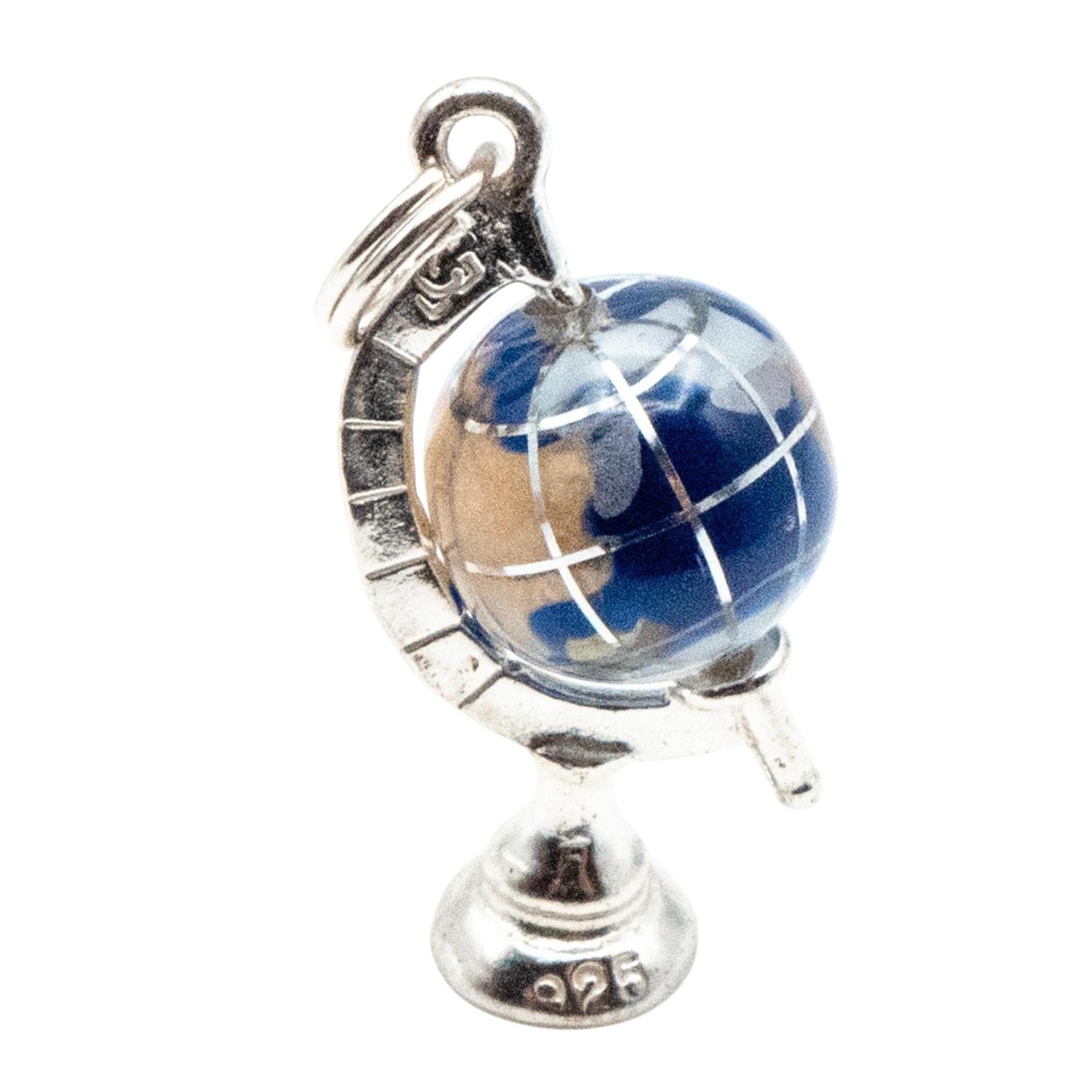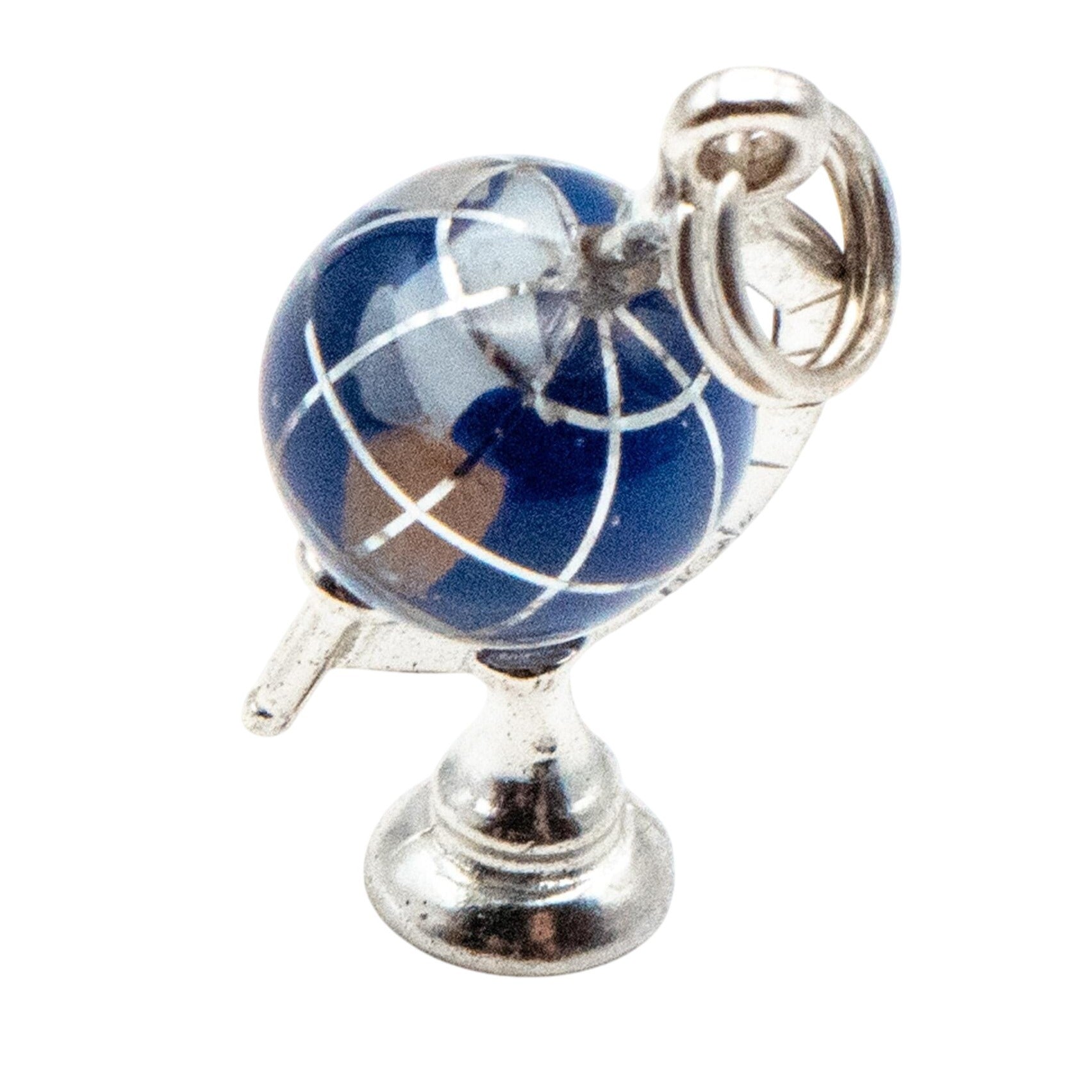 This Sterling Silver charm boasts an intricately detailed miniature globe design, showcasing a vibrant blue and multi-color enamel design. Its compact size makes it a thoughtful addition to charm bracelets or necklaces, embodying the spirit of wanderlust and exploration.
