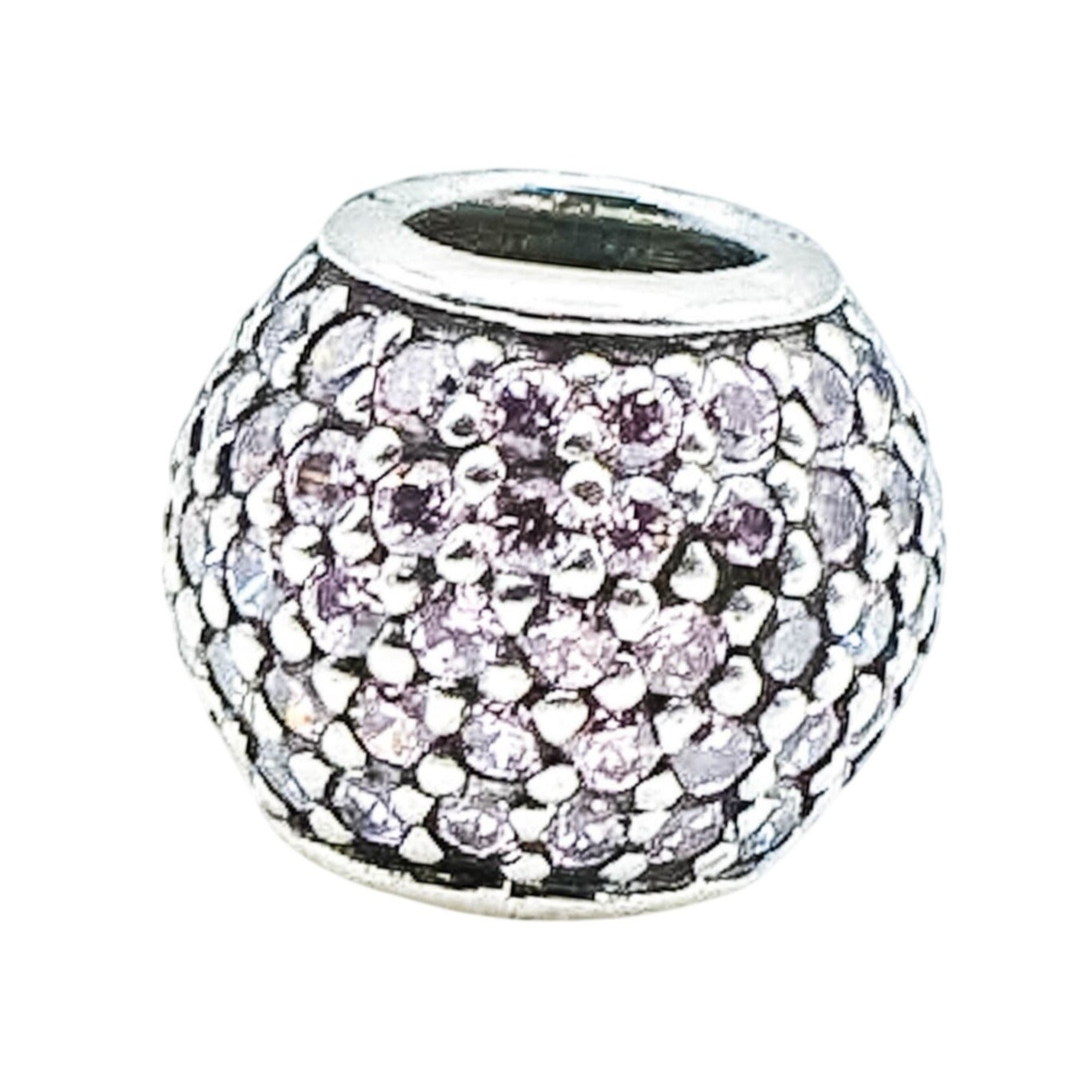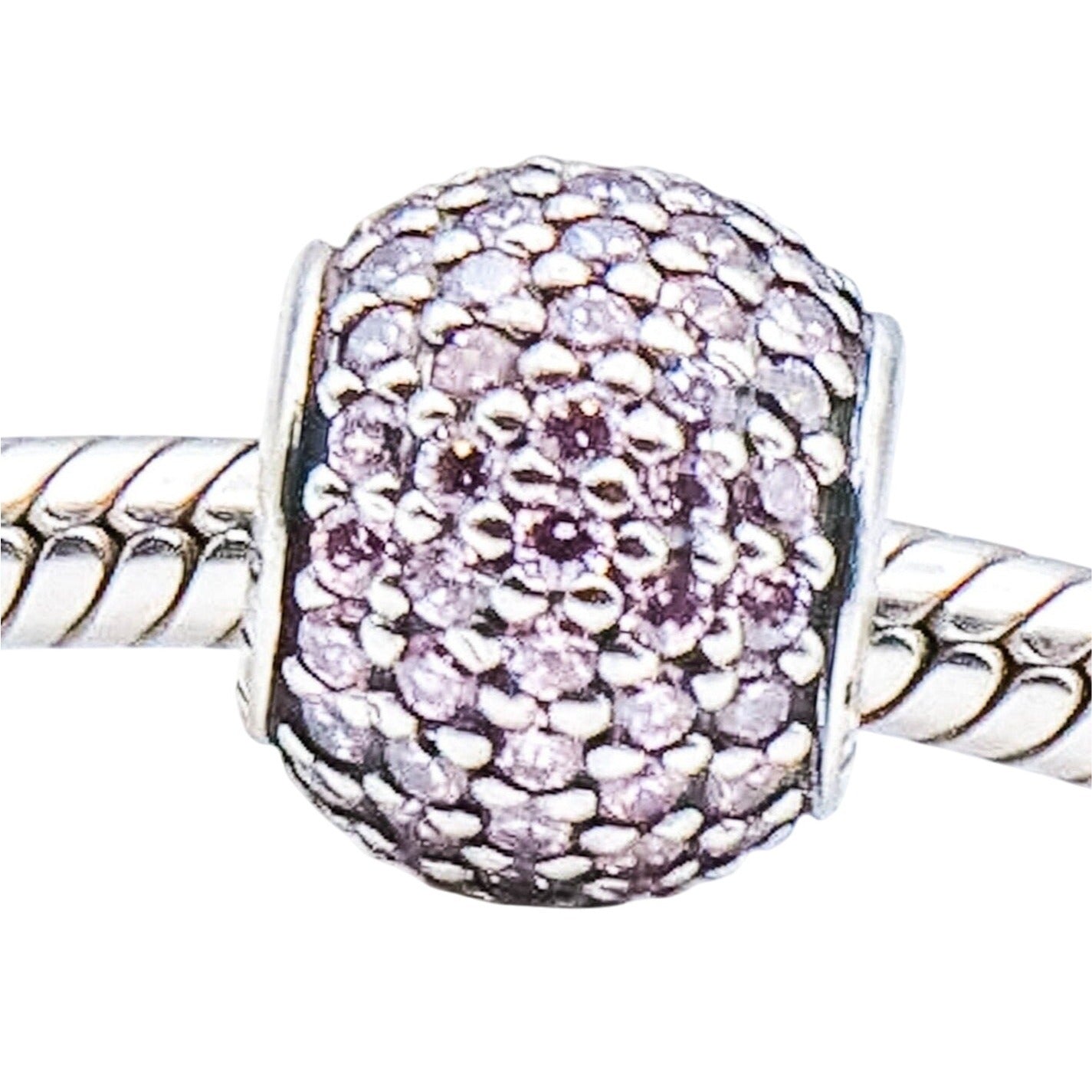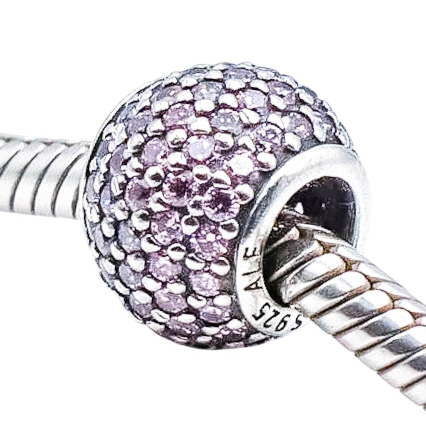 Authentic PANDORA Violet Pave Lights Sterling Silver Charm With Violet Zirconia 791051CFP - Retired. This stunning Sterling Silver charm covered in violet faceted Cubic Zirconias adds lots of sparkle to your jewelry design. Violet is in the purple color family. Purple is the color of spirituality and imagination.