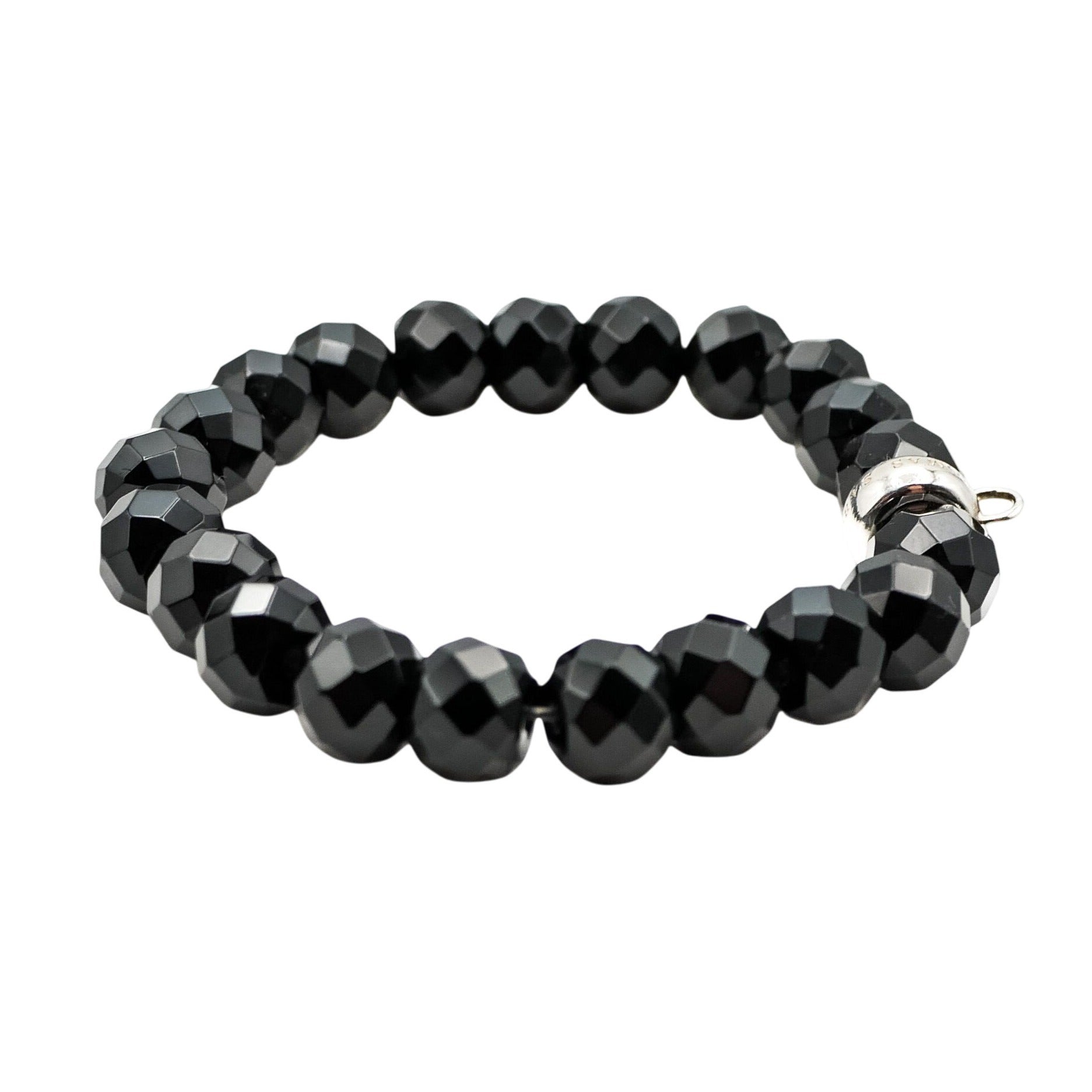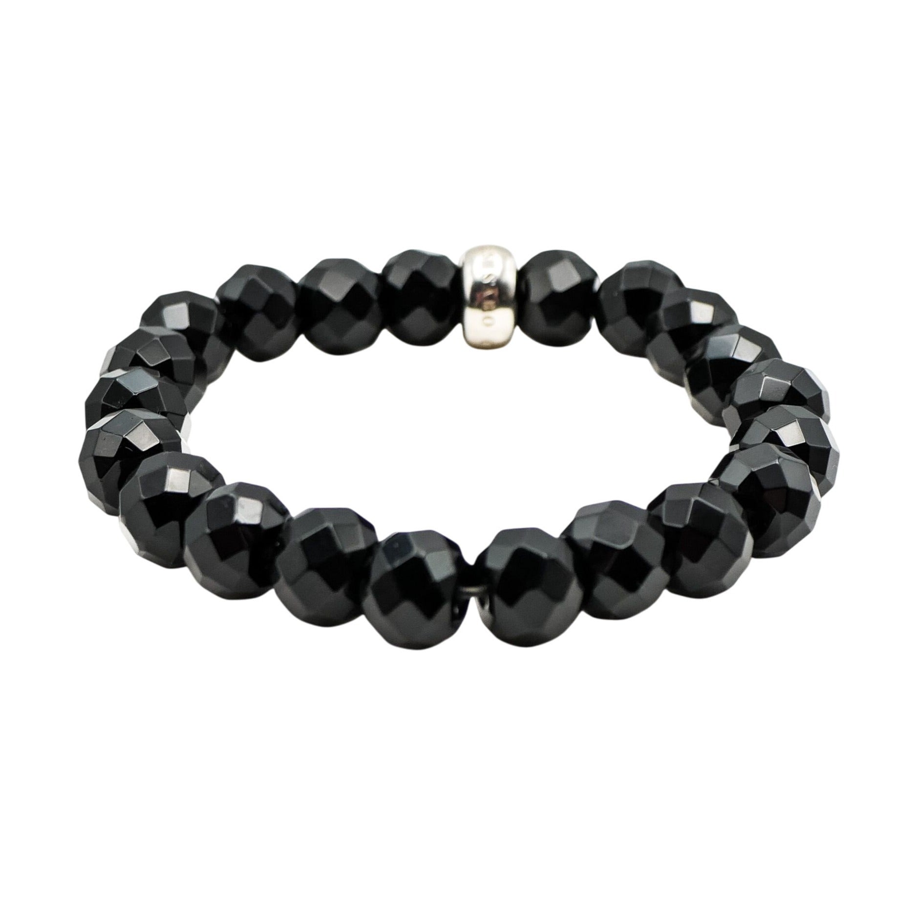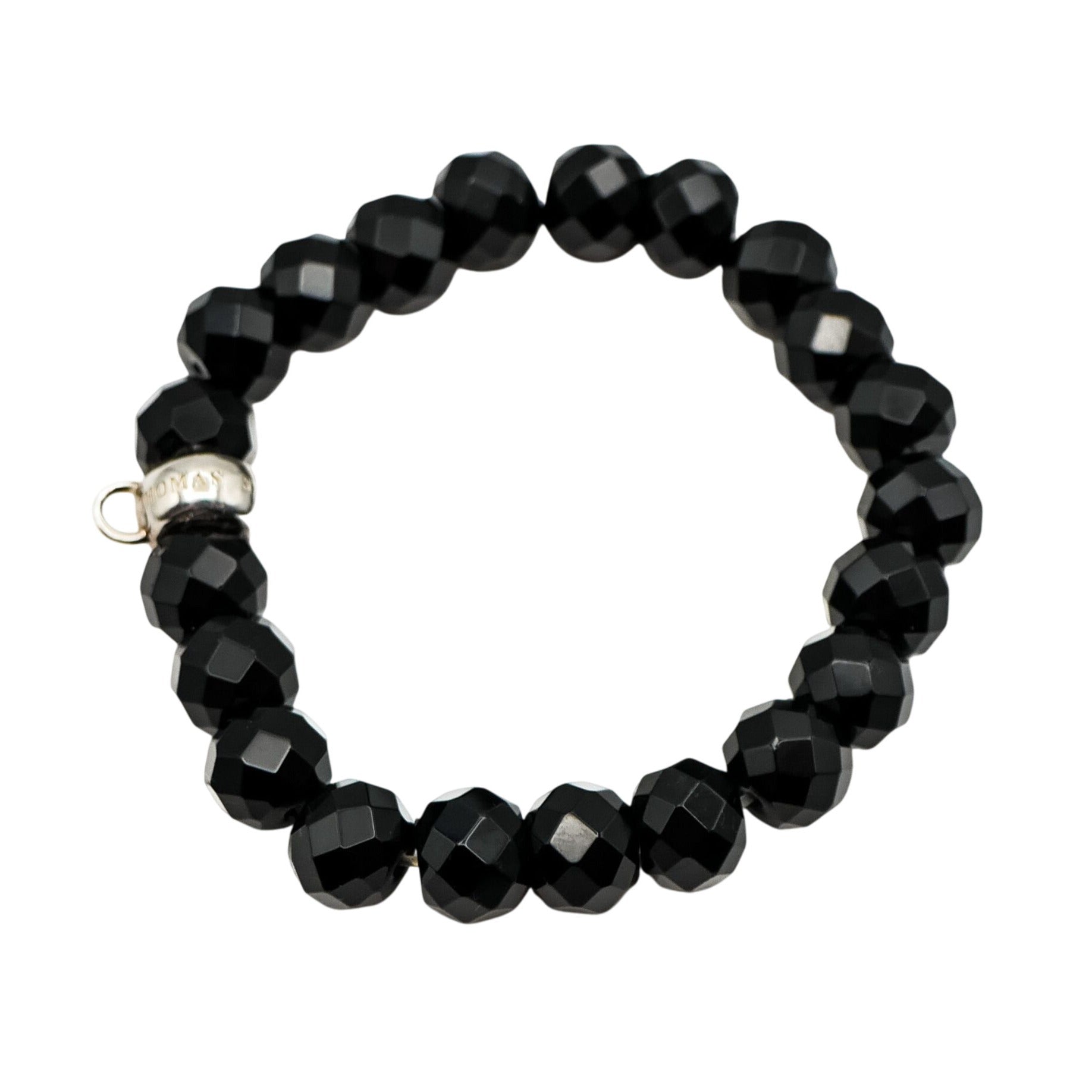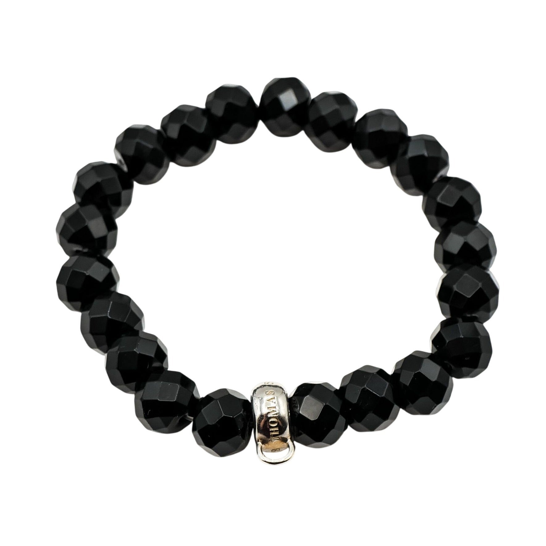This Thomas Sabo bracelet features finely-cut obsidian beads, exuding understated elegance. The silver charm carrier adds versatility, allowing personalization. A sophisticated accessory enhancing any jewelry collection.