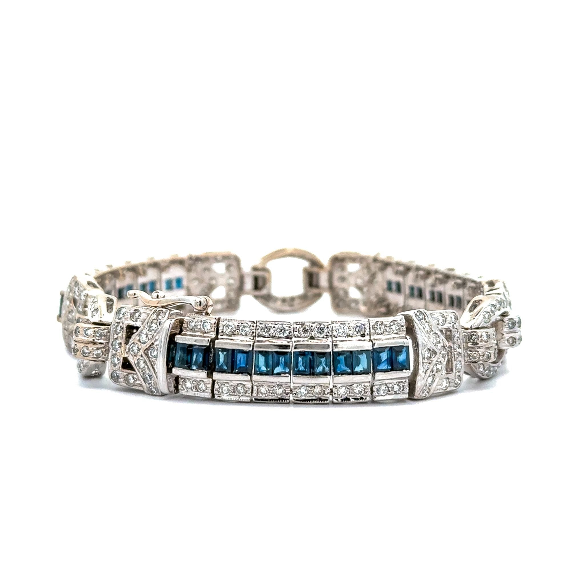 This luxurious bracelet embodies sophistication with every detail. The contrast between the cool blue sapphires and the brilliant white diamonds is both elegant and captivating. Perfect for anniversaries, milestone occasions, or as an heirloom-quality gift, this piece speaks volumes without saying a word.