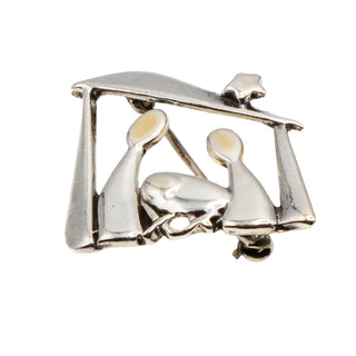 Vintage SHUBE Sterling Silver Nativity Scene Christmas Brooch Pin