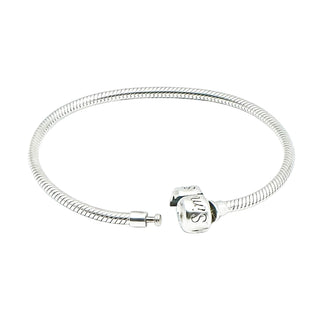 ZABLE 7.5 Inch Sterling Silver Flex Bangle Charm Bracelet With Stoppers And CZ Ends