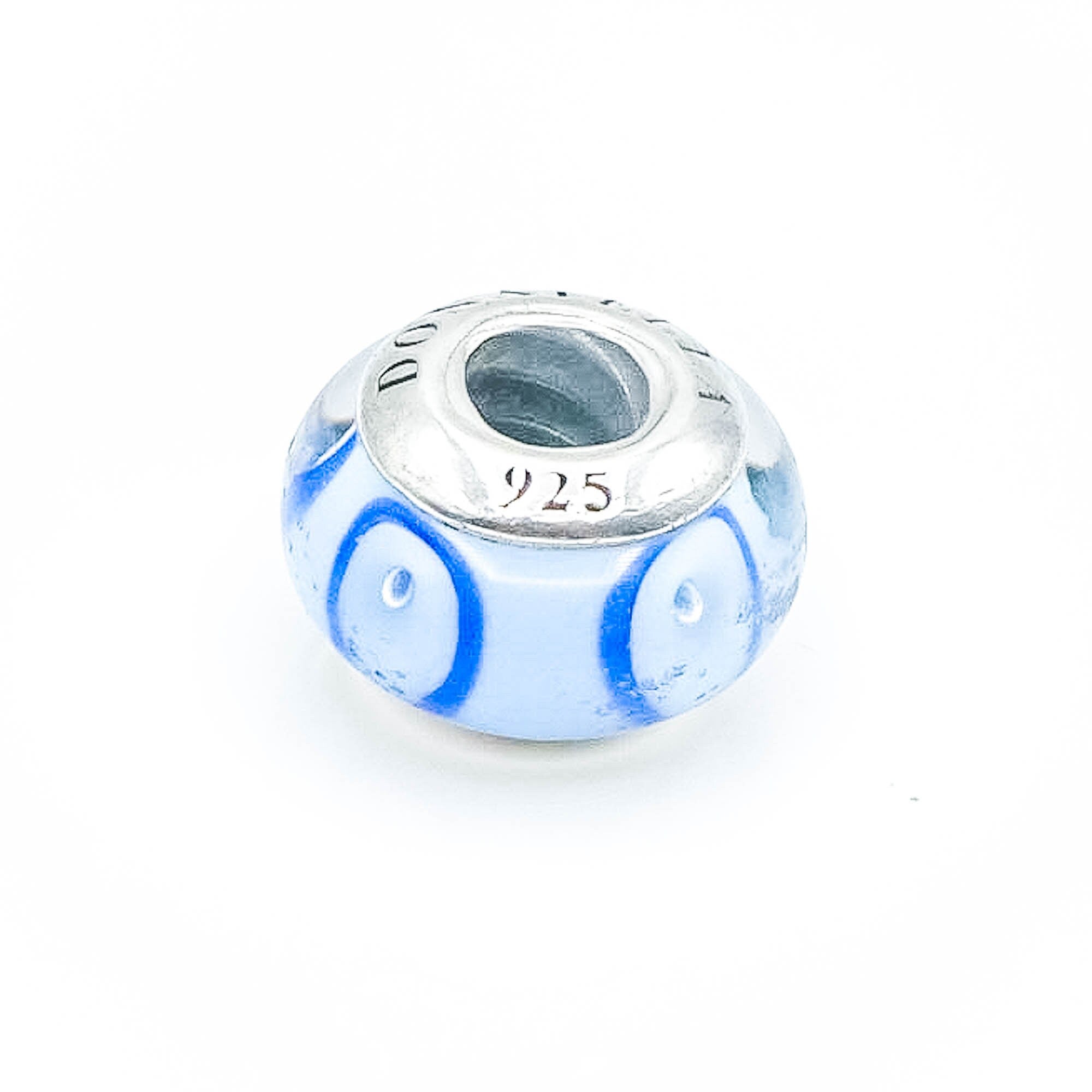 Add bold color and artisan detail to your charm bracelet with this DONATELLA Blue Circles Murano Glass Charm. Featuring vibrant blue Murano glass with dark blue circles, this handcrafted charm is set on a solid sterling silver core and compatible with most major charm bracelet brands.