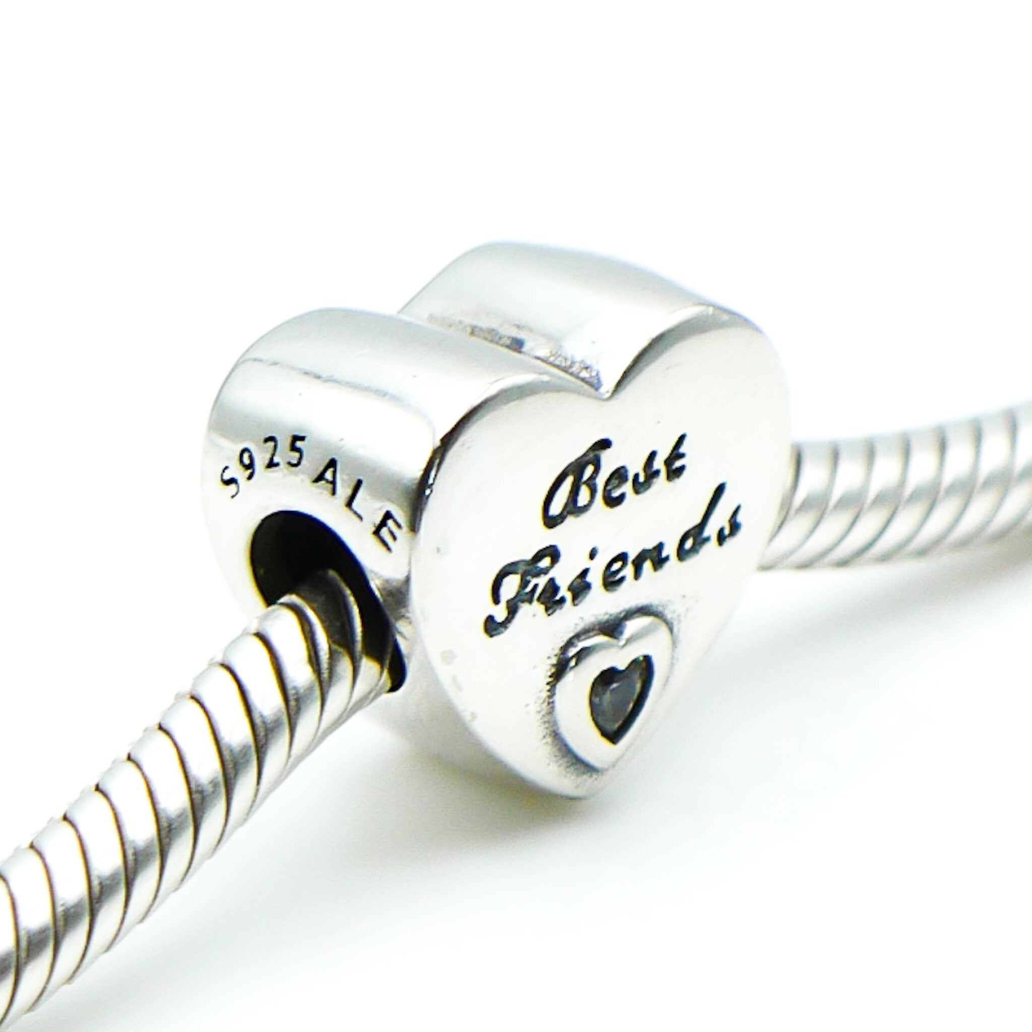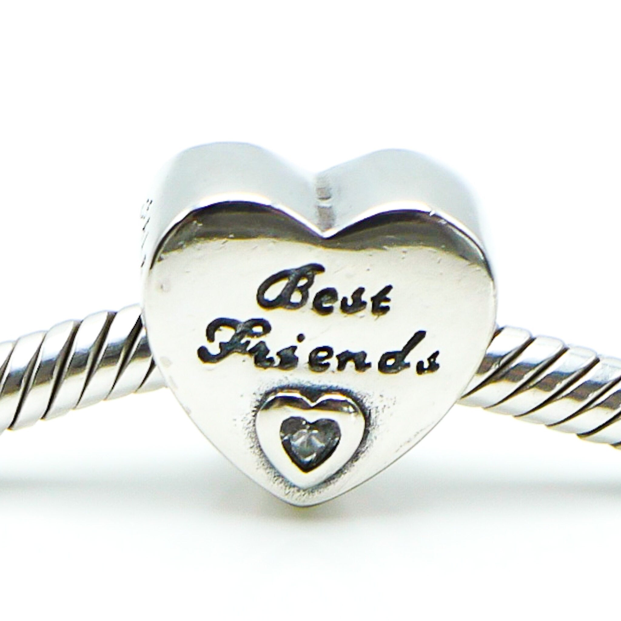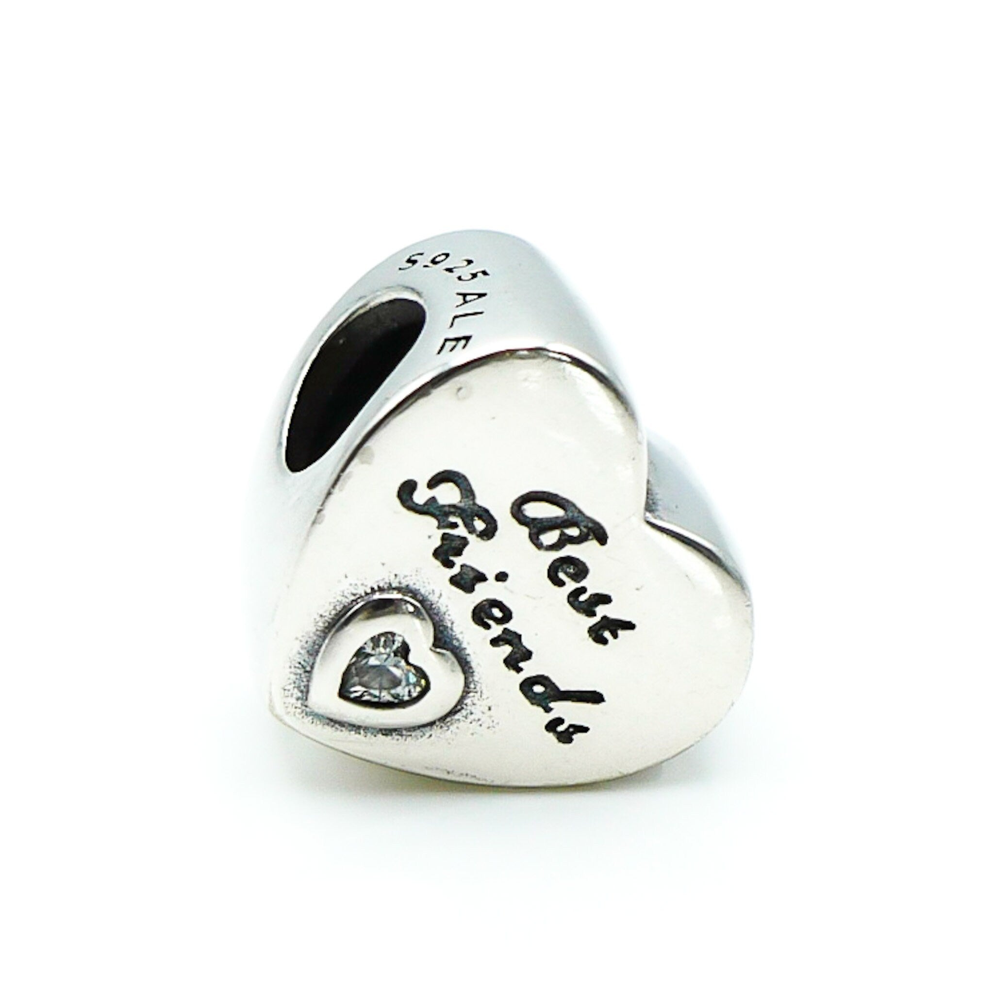 Authentic PANDORA Friendship Heart Sterling Silver Charm With Clear CZ 791727CZ - Retired. Share how much you care about that special person in your life with a beautiful silver heart adorned by heart-shaped clear cubic zirconia and the words "Best Friends" engraved above the CZ heart.