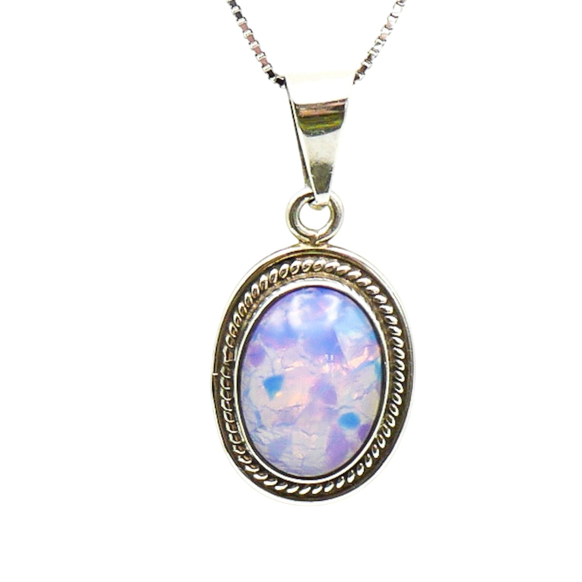 This handcrafted dichroic glass pendant displays shimmering, opal-like colors that shift beautifully from every angle. Set in sterling silver and made in Mexico, it’s a unique, eye-catching piece.