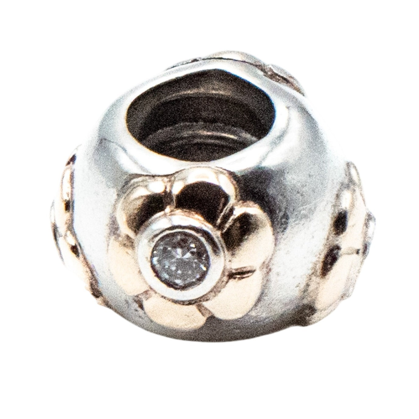 Celebrate timeless elegance with this authentic PANDORA Raised Flower charm. Crafted in sterling silver with a beautiful 14K gold floral center and accented by shimmering cubic zirconia, this two-tone charm adds classic charm to any bracelet. A perfect gift for nature lovers or collectors of retired PANDORA favorites.