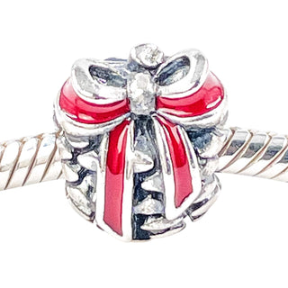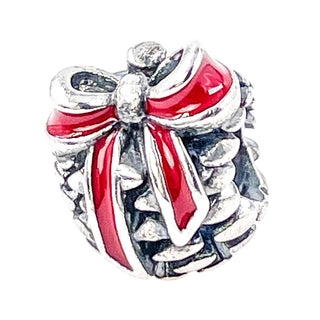 Pandora Adornment Sterling Silver Charm With Red Enamel And Clear Zirconia