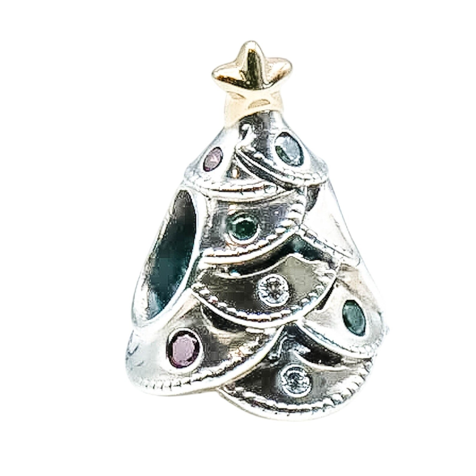 Authentic PANDORA Festive Christmas Tree With 14K Gold And Red, Green And Clear Zirconia 791999CZRMX - Retired. Celebrate Christmas with this beautiful sparkling charm which embodies the spirit of this season. This Pandora Christmas Tree charm features a 14K Gold star and colorful Cubic Zirconias as ornaments.