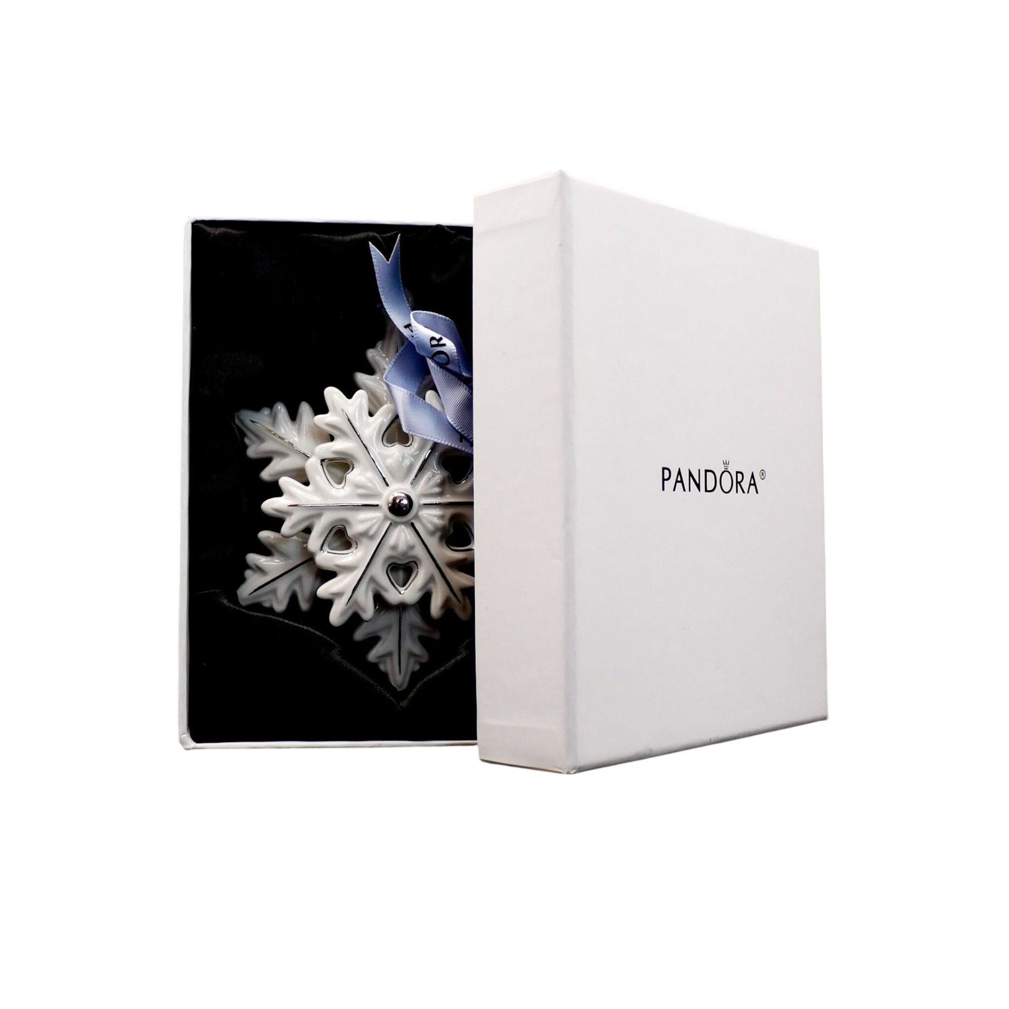 Authentic PANDORA Limited Edition 2015 Porcelain Snowflake Christmas Ornament. Add a special touch to your Pandora collection with this authentic Pandora Christmas ornament. This item was sold for a limited time in 2015 with a minimum purchase in Pandora stores and online.