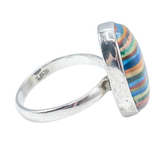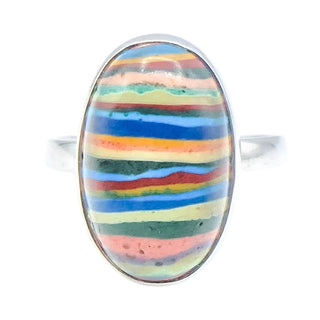 Sterling Silver Rainbow Calsilica Ring Size 9 | Oval Cabochon Colorful Statement Ring