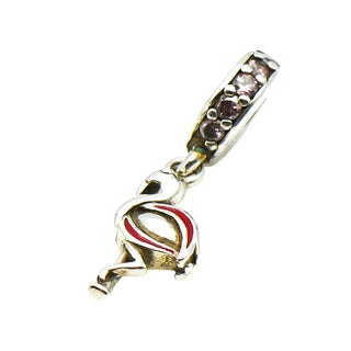 Pandora Pave Heart Sterling Silver Dangle Charm With Red Pave Zirconia