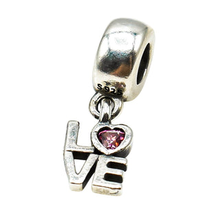 Pandora Love Sterling Silver Dangle Charm With Salmon Zirconia Heart