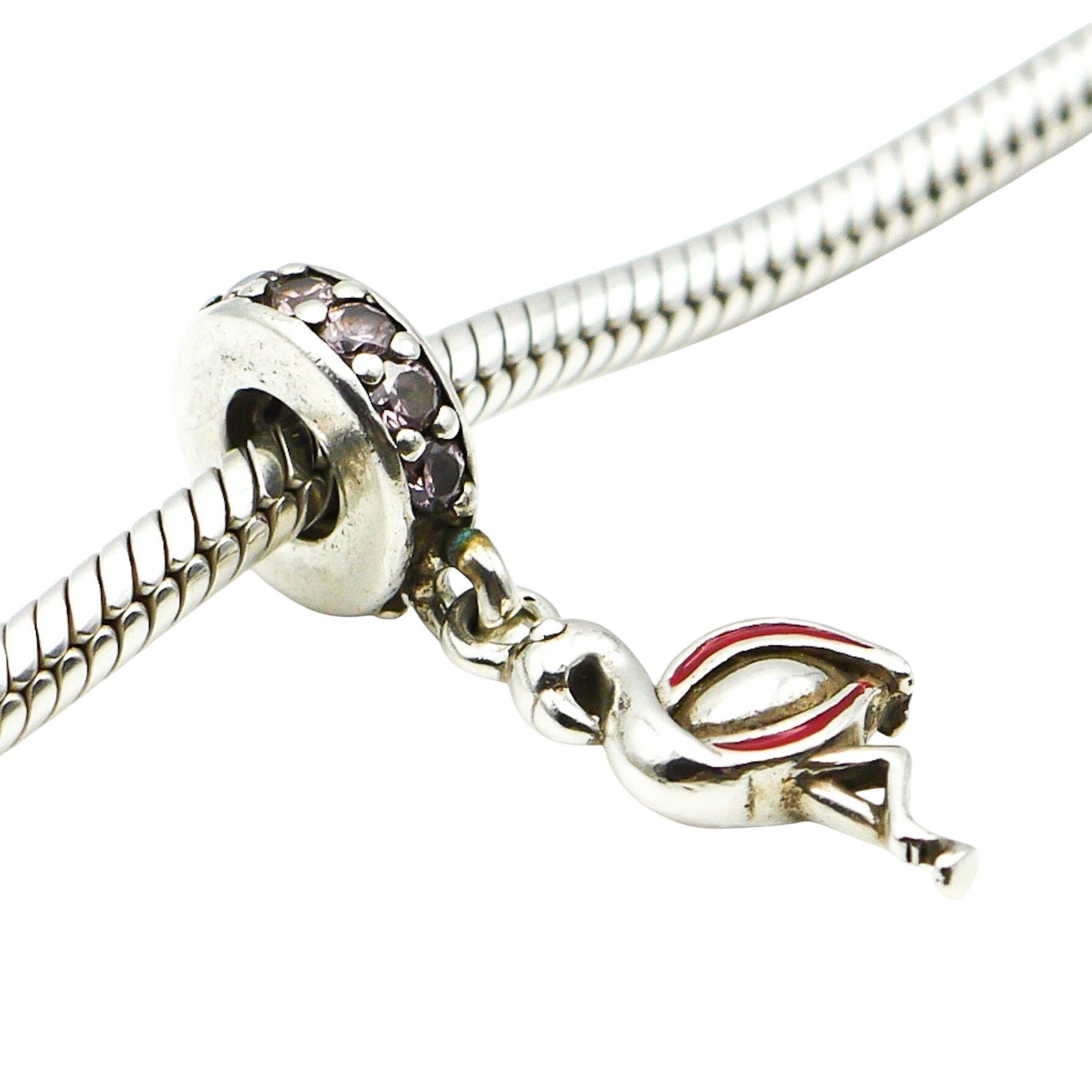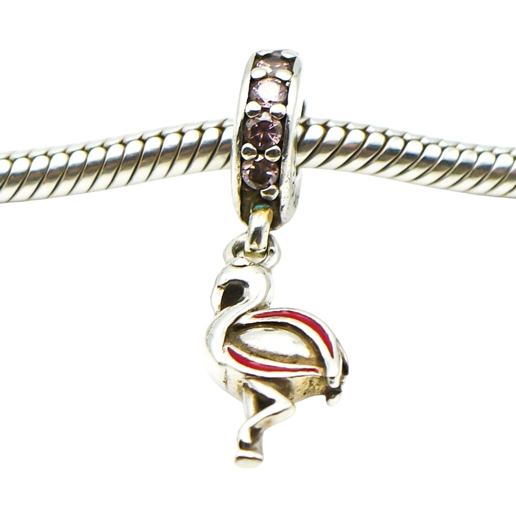 Authentic PANDORA Flamingo Sterling Silver Bahamas Dangle Charm With Salmon Zirconia And Pink Enamel 791294CZS - Retired. This lovely Sterling Silver dangle charm features a Flamingo adorned with pink enamel. The charm holder is decorated with Salmon Cubic Zirconia for that extra sparkle. Flamingos are the National Bird of The Bahamas.