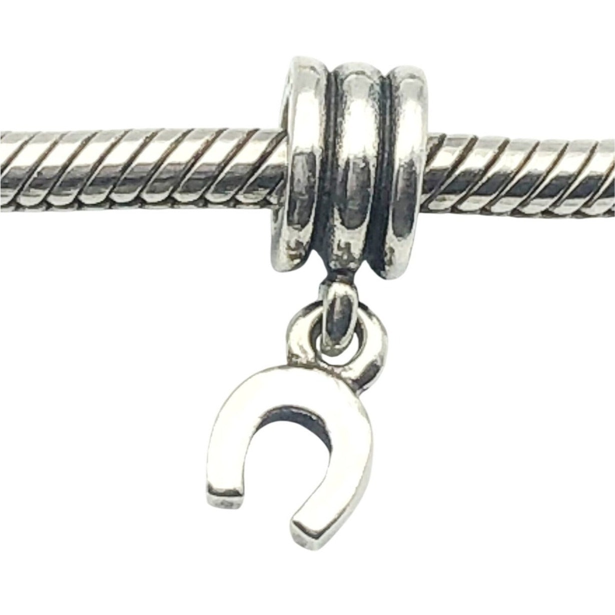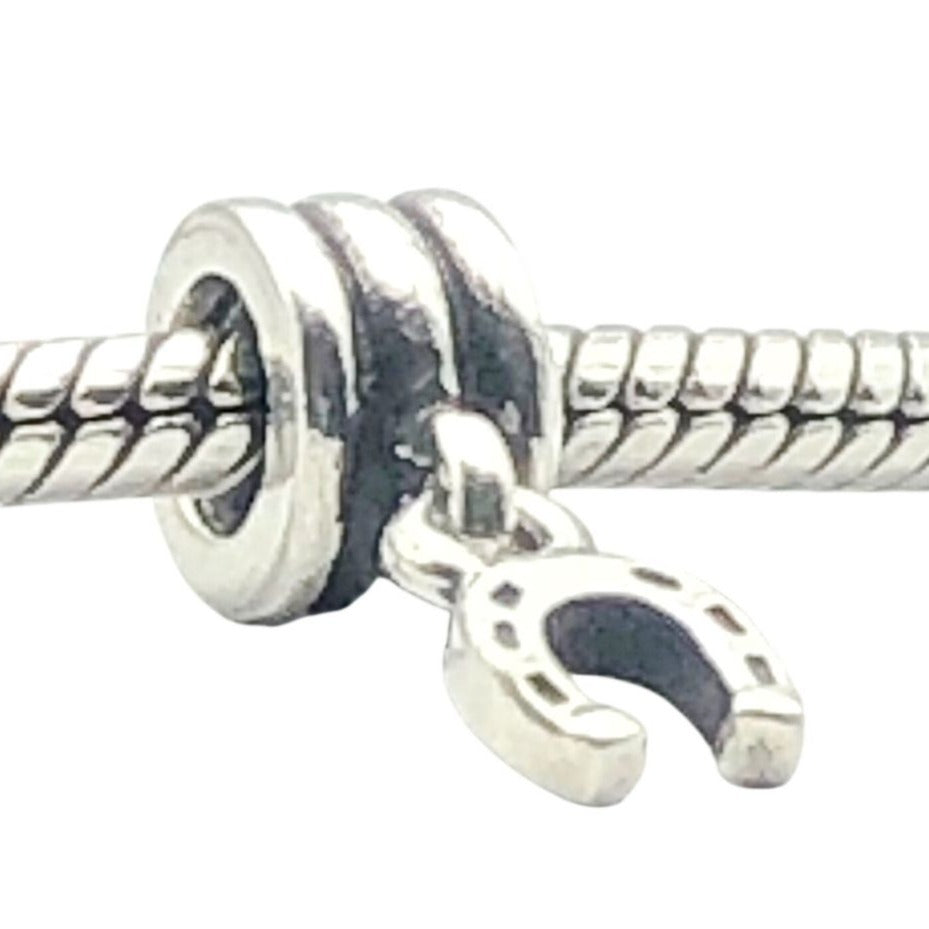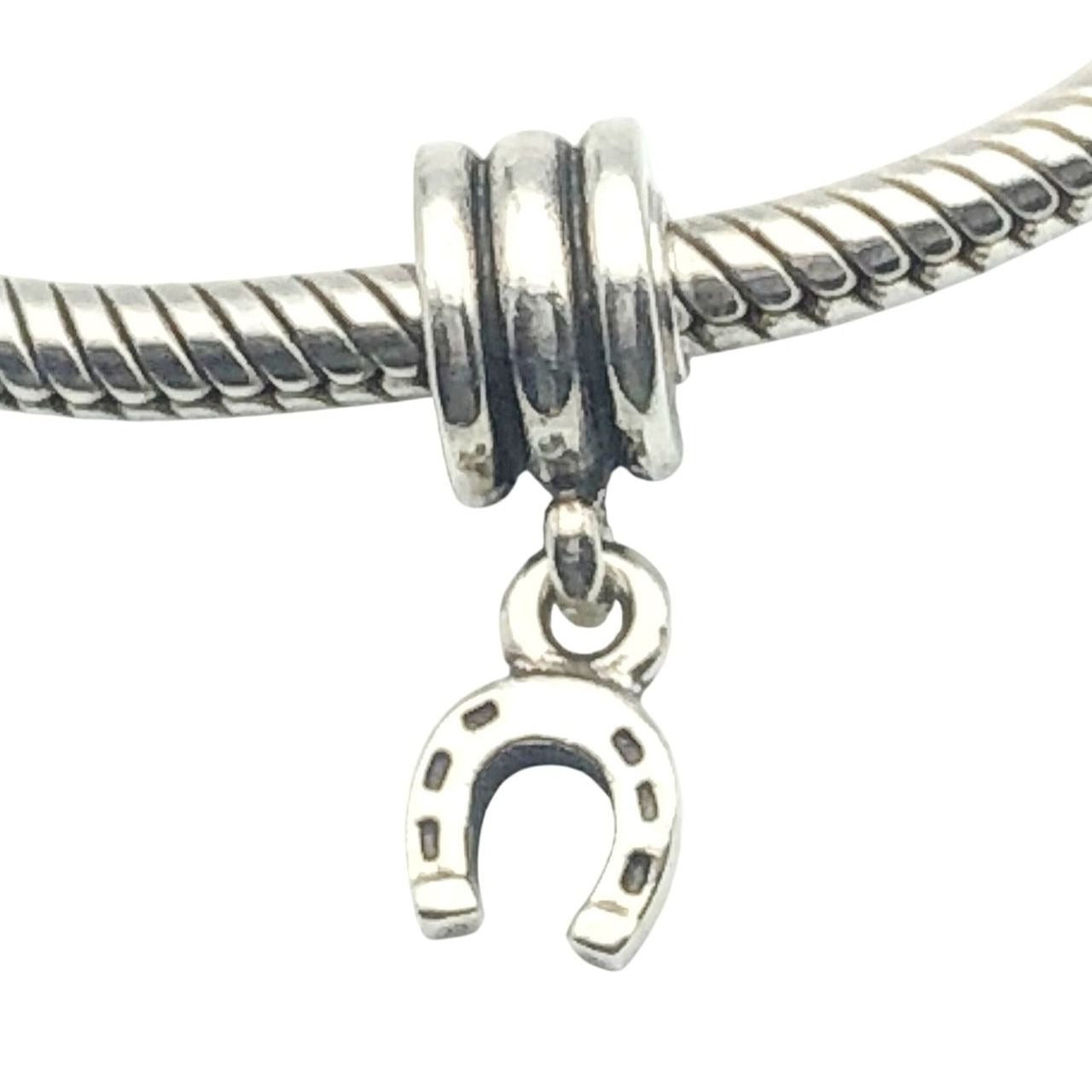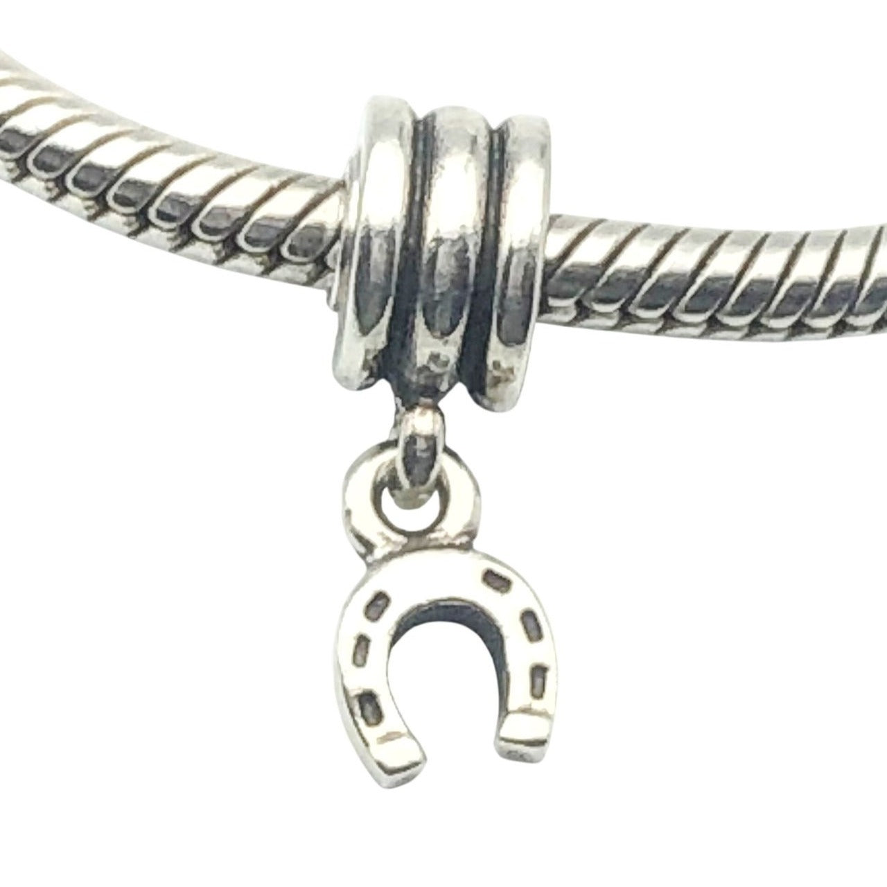 Bring a touch of luck and equestrian elegance to your bracelet with this retired Pandora hanging horseshoe dangle charm. Crafted in sterling silver with classic horseshoe detailing, this symbolic piece represents protection, good fortune, and positive energy - a meaningful addition for horse lovers or anyone drawn to lucky talismans.