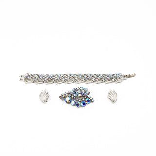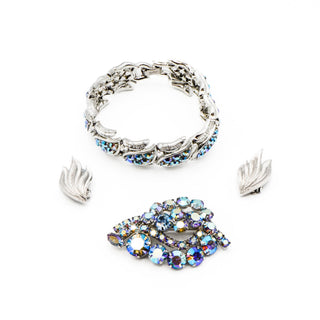 Vintage Signed Coro Blue Aurora Borealis Parure Bracelet, Earrings and Brooch