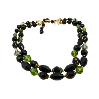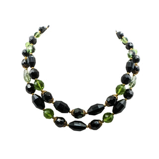Vintage Crown Trifari Black & Green Double-Strand Necklace Size 15-17 Inches