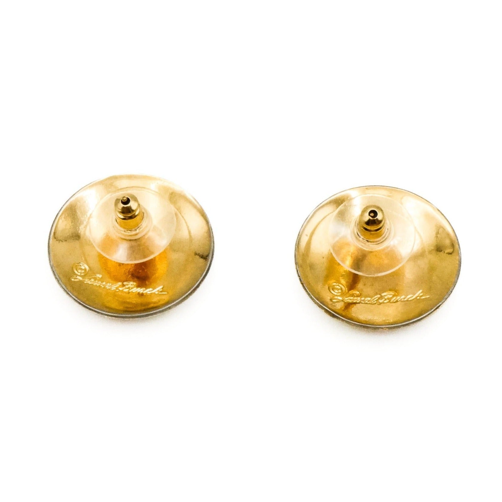 Measuring approximately 1 inch in diameter, these earrings make a confident statement while remaining beautifully wearable. Clearly marked Laurel Burch, they are a wonderful example of her collectible art jewelry.