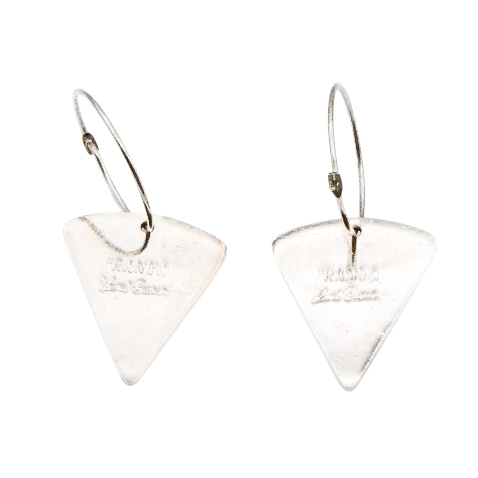 These vintage Laurel Burch “Ranya” dangle earrings showcase her signature artistic style with vibrant cloisonné enamel in shades of pink, lavender, turquoise, and black. The distinctive pie-shaped design features a bold geometric pattern that feels both playful and sophisticated.