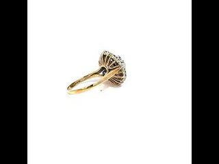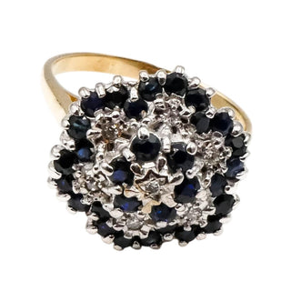 Vintage Sapphire & Diamond Flower Cluster Ring – 9K Yellow Gold English Estate Ring Size 8.5