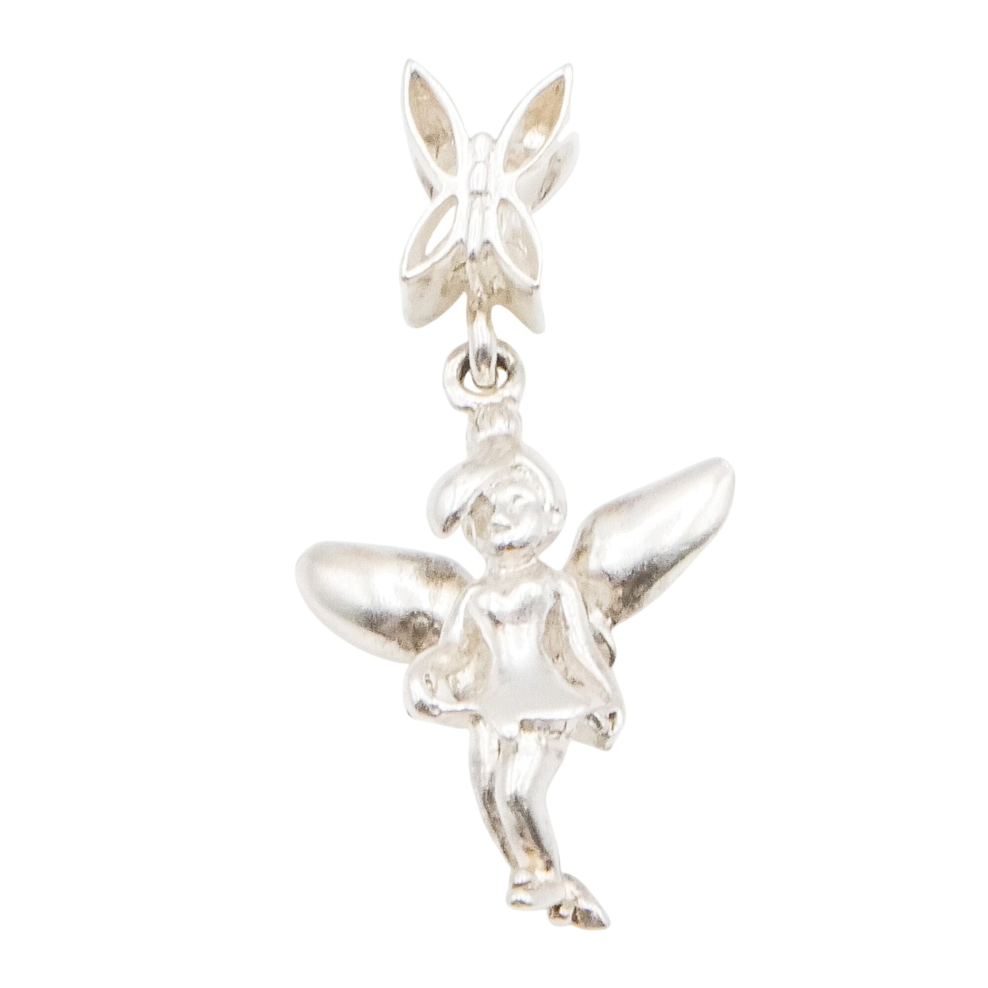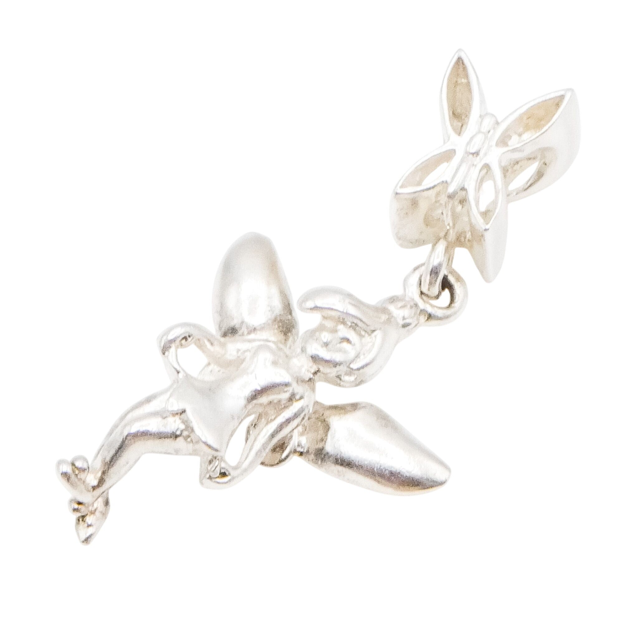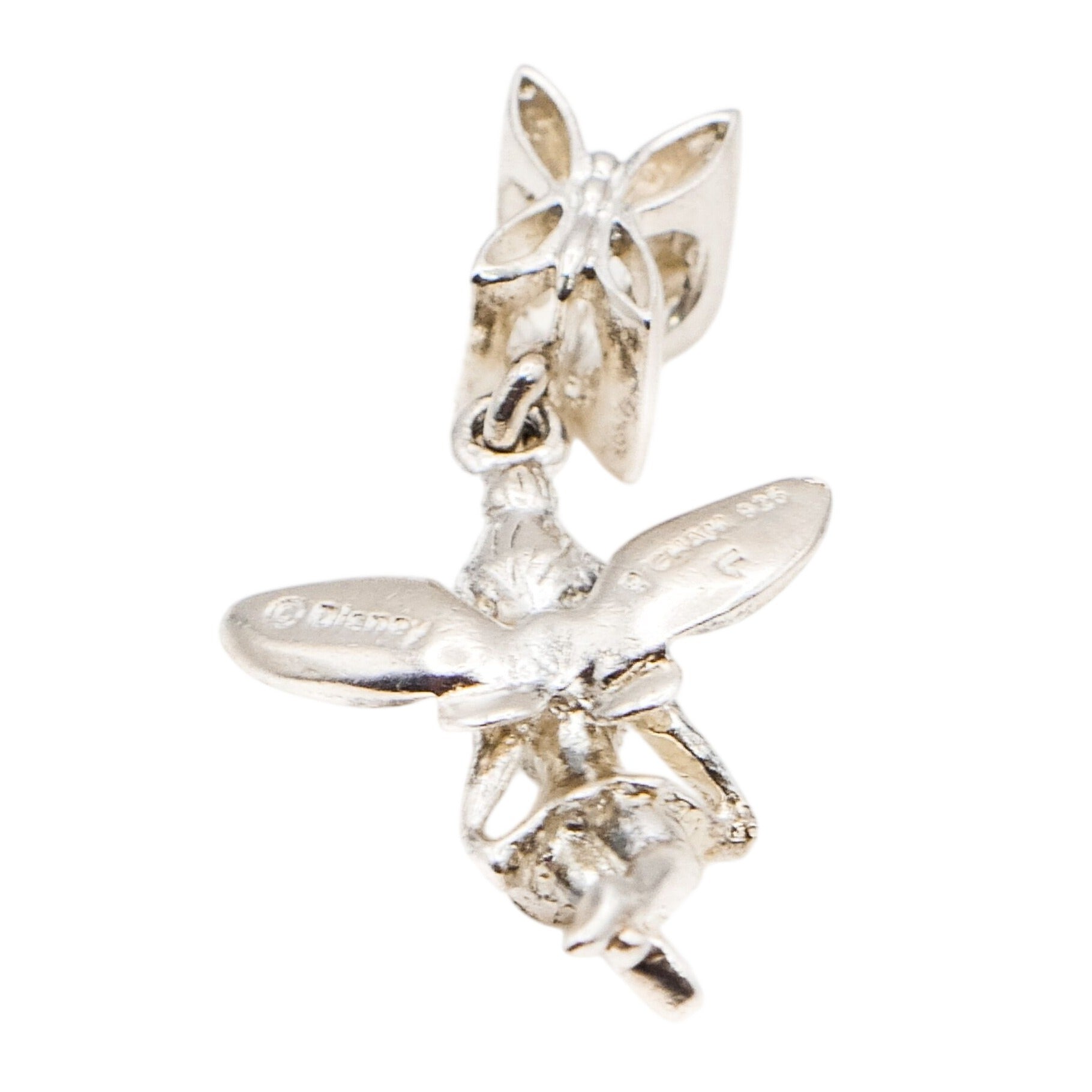 This authentic Chamilia Disney Tinker Bell charm is crafted in sterling silver and features the beloved fairy in graceful dangle form. With delicately sculpted wings and playful movement, this charm brings a touch of magic and nostalgia to any charm bracelet.