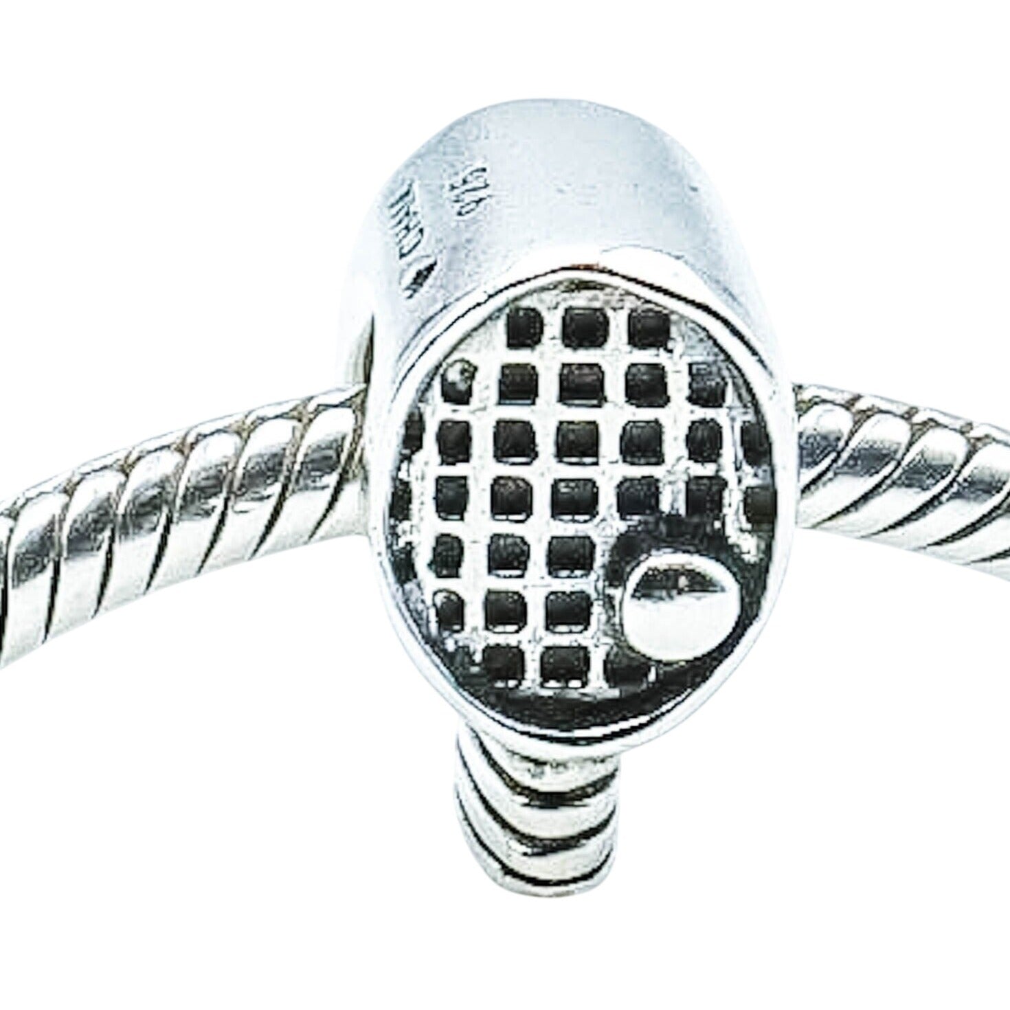 This sterling silver charm showcases an intricate tennis racket design, embodying the passion of the sport. Crafted with care, its 925 sterling silver composition ensures durability and timeless elegance. Perfect for tennis enthusiasts, it fits seamlessly on European bracelets, adding a sporty yet sophisticated touch to your jewelry collection.