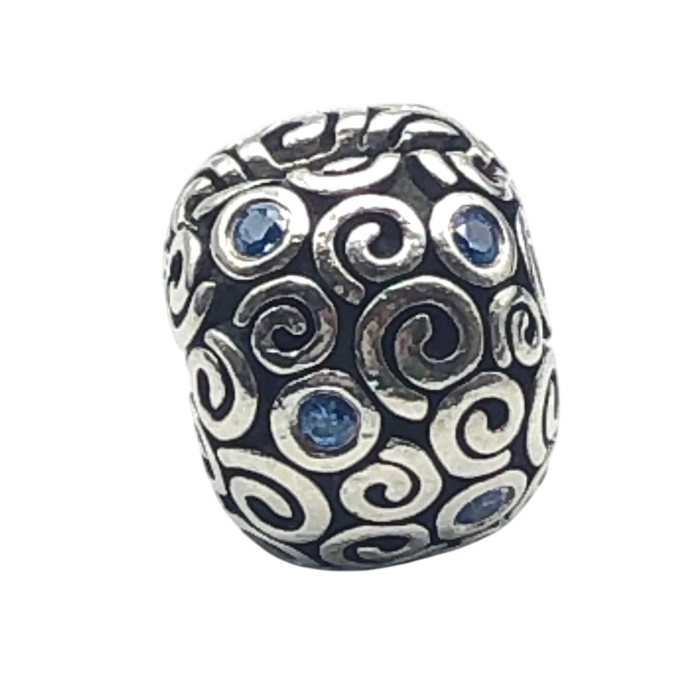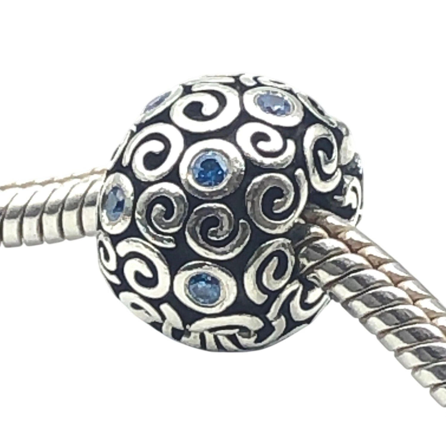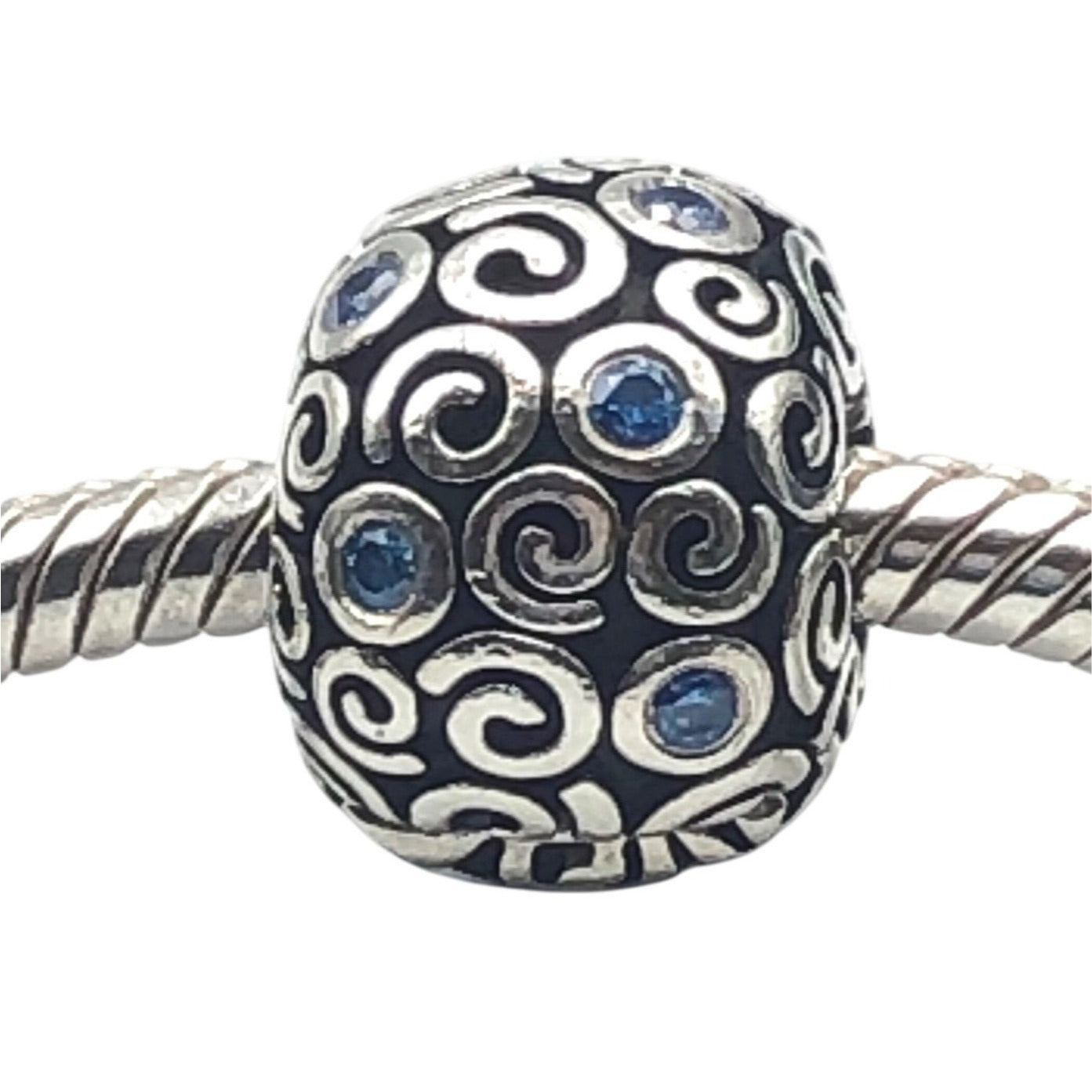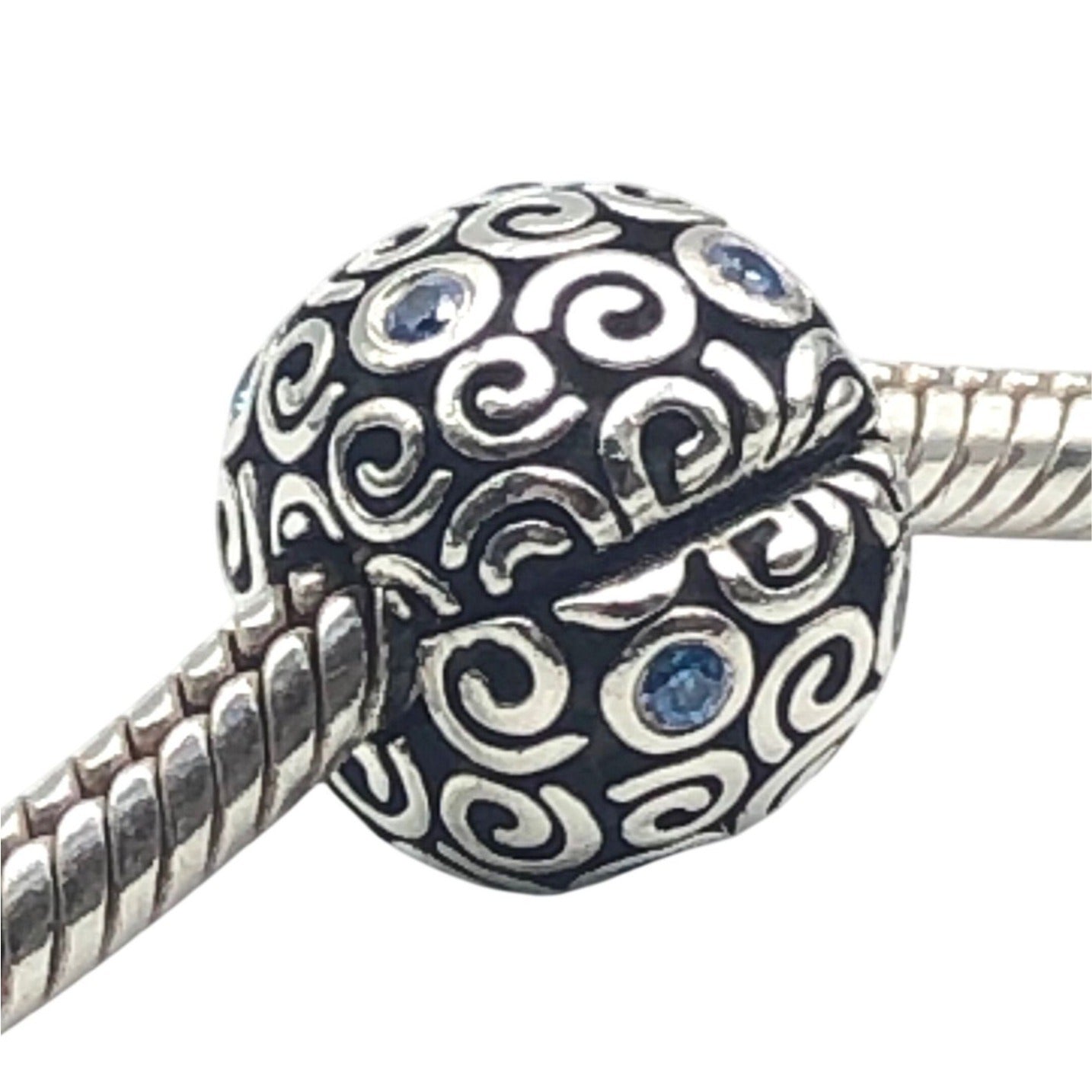 Authentic PANDORA Abstract SWIRLS Blue Cubic Zirconia Sterling Silver Clip CHARM Bead 790962CZB - Retired. Divide your bracelet into thirds with these beautiful clips.