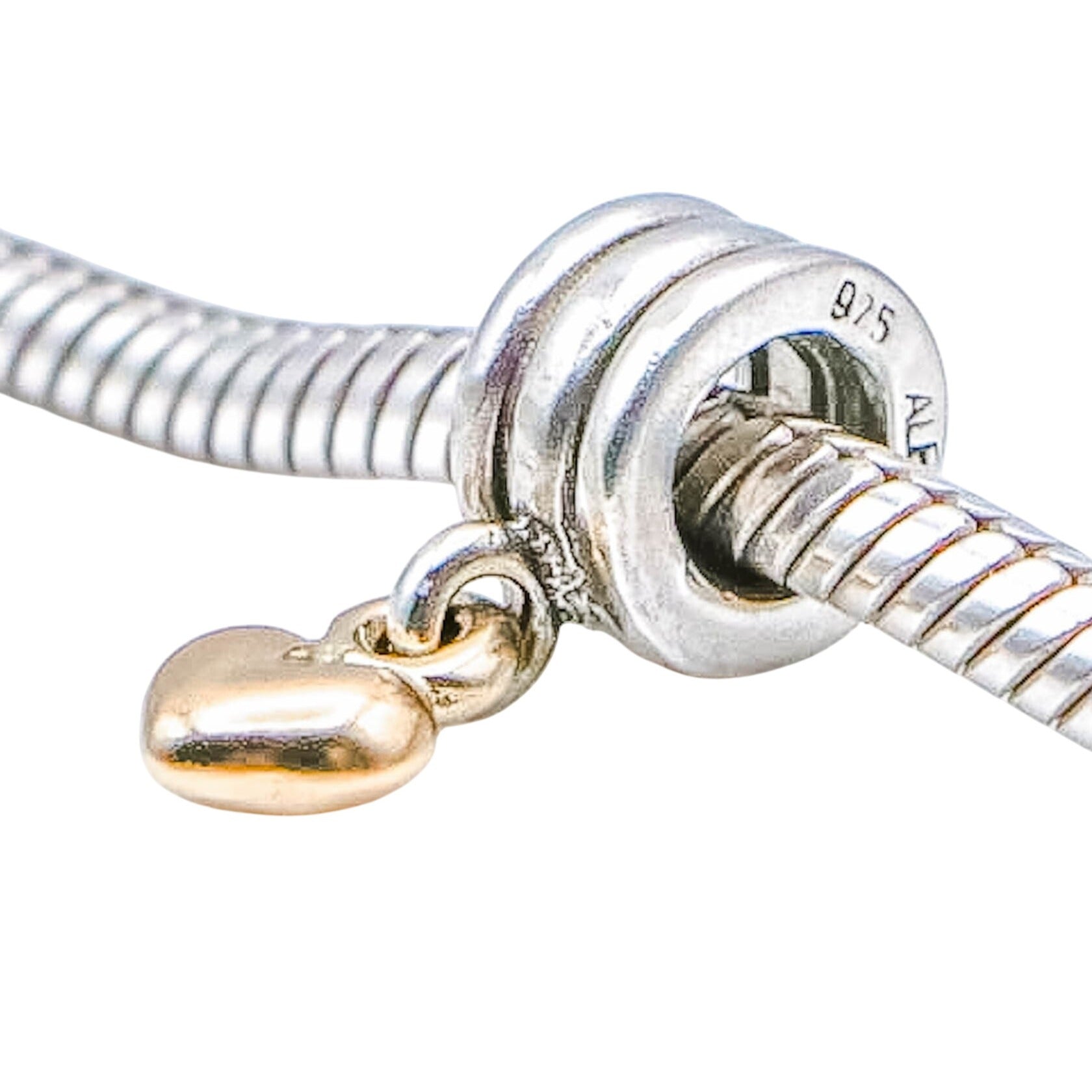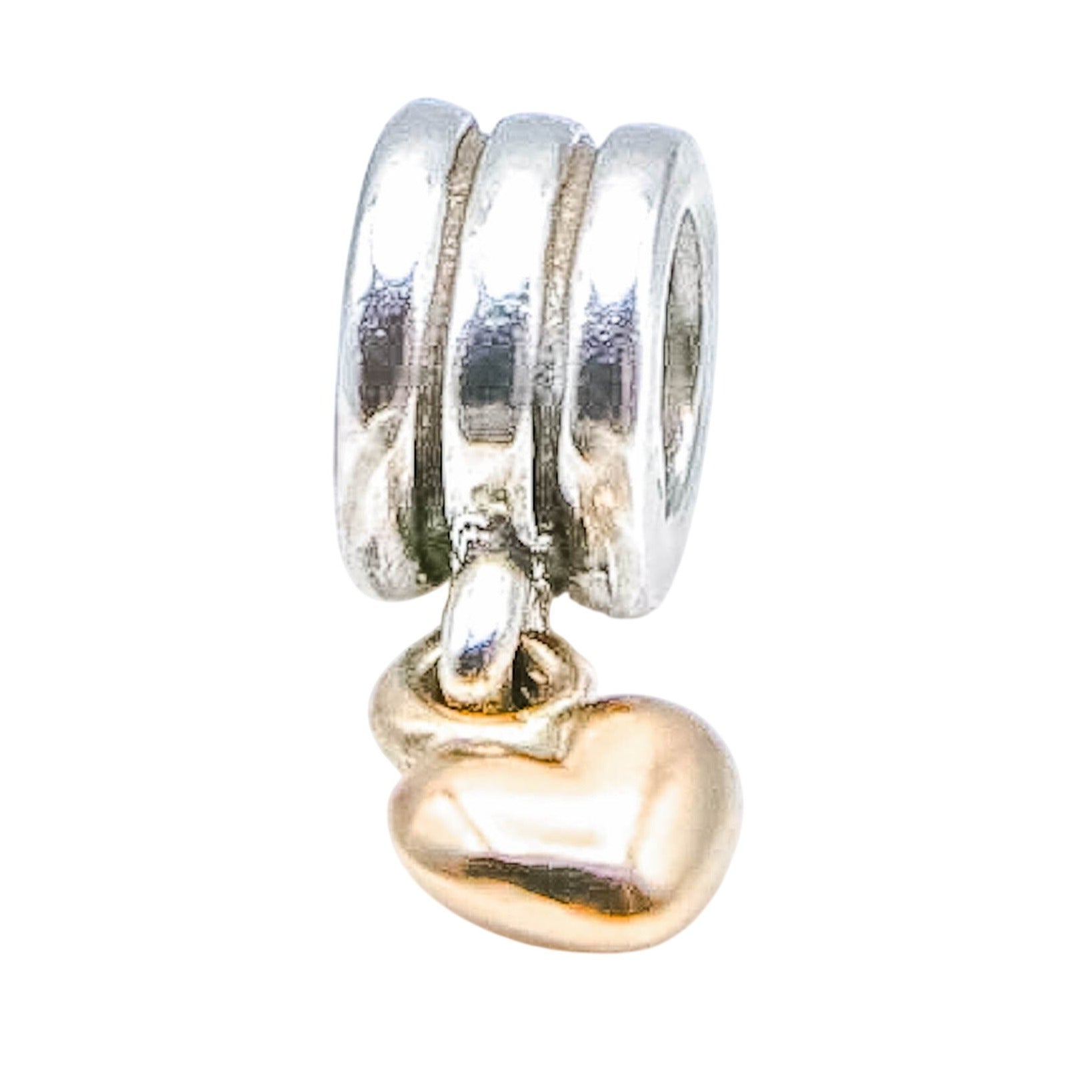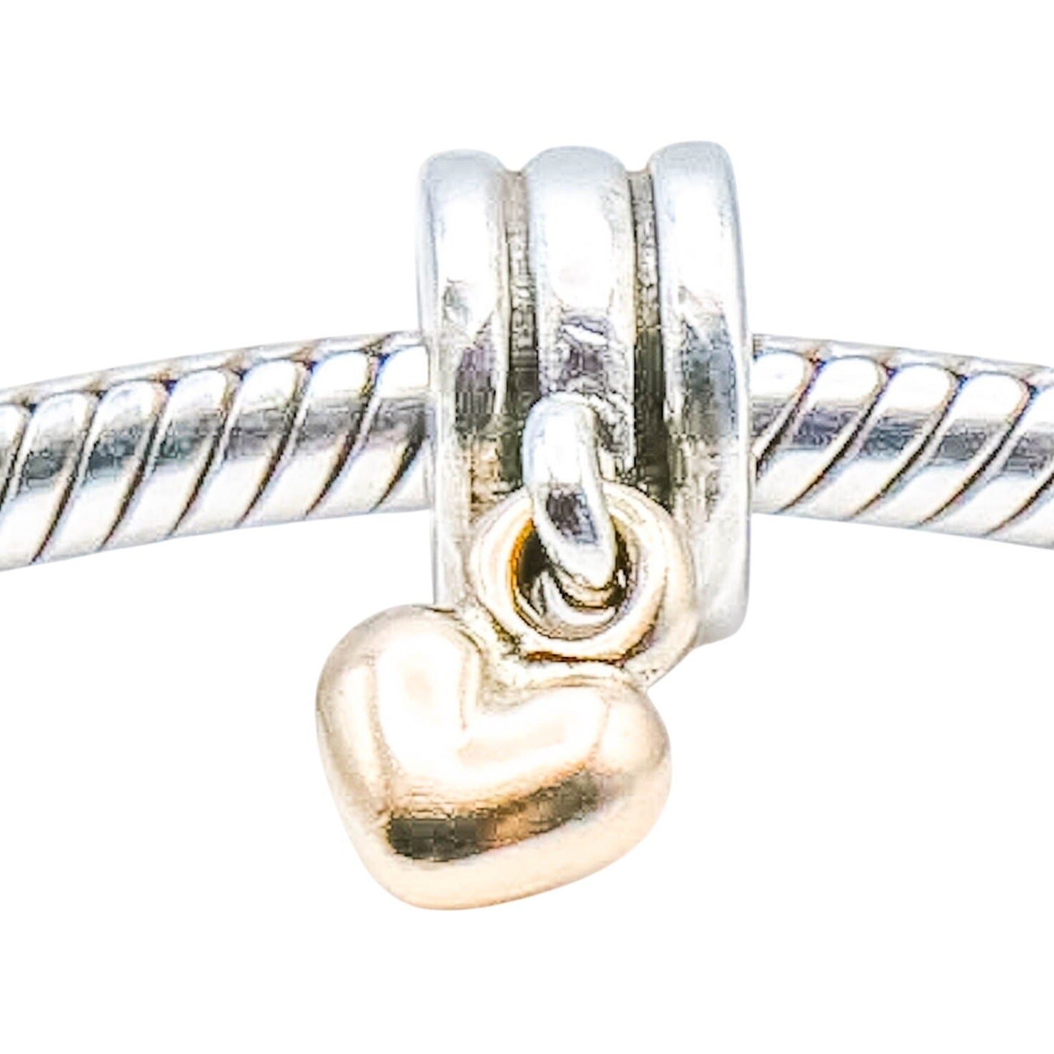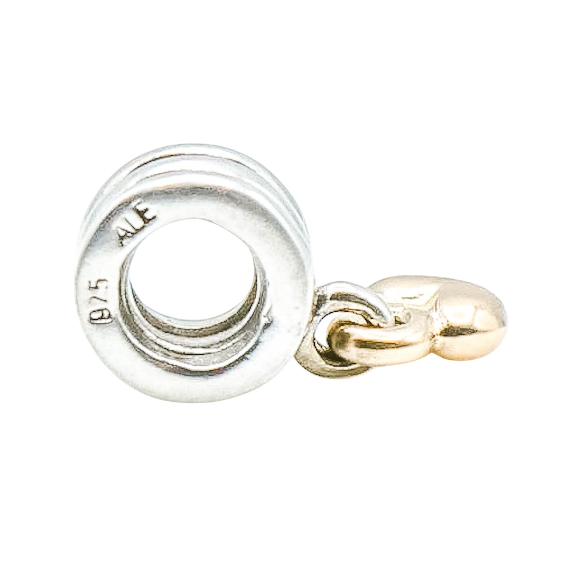 Authentic PANDORA Dangling Heart Charm 925 ALE Sterling Silver Bead With 14K Gold Heart Dangle 790173 - Retired.