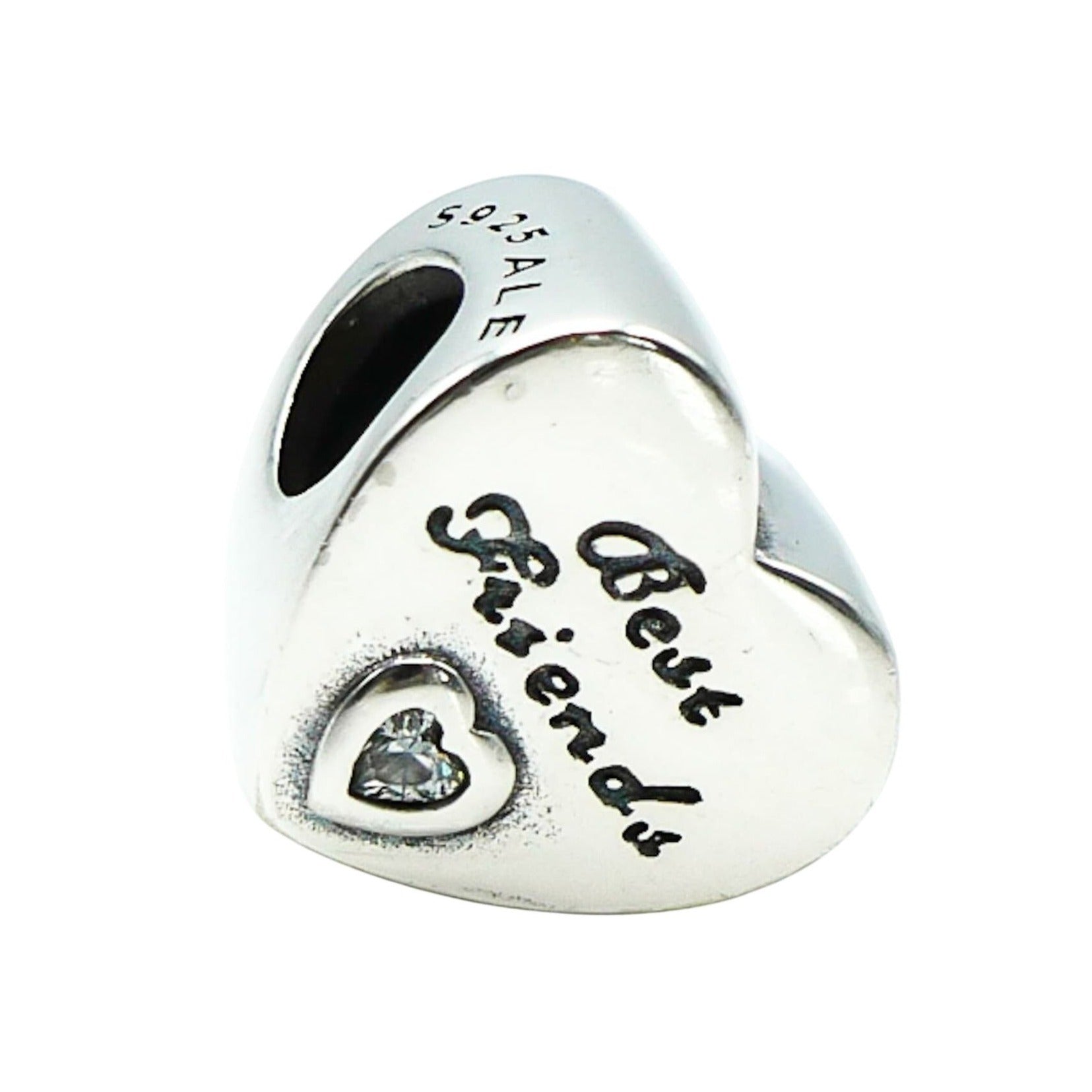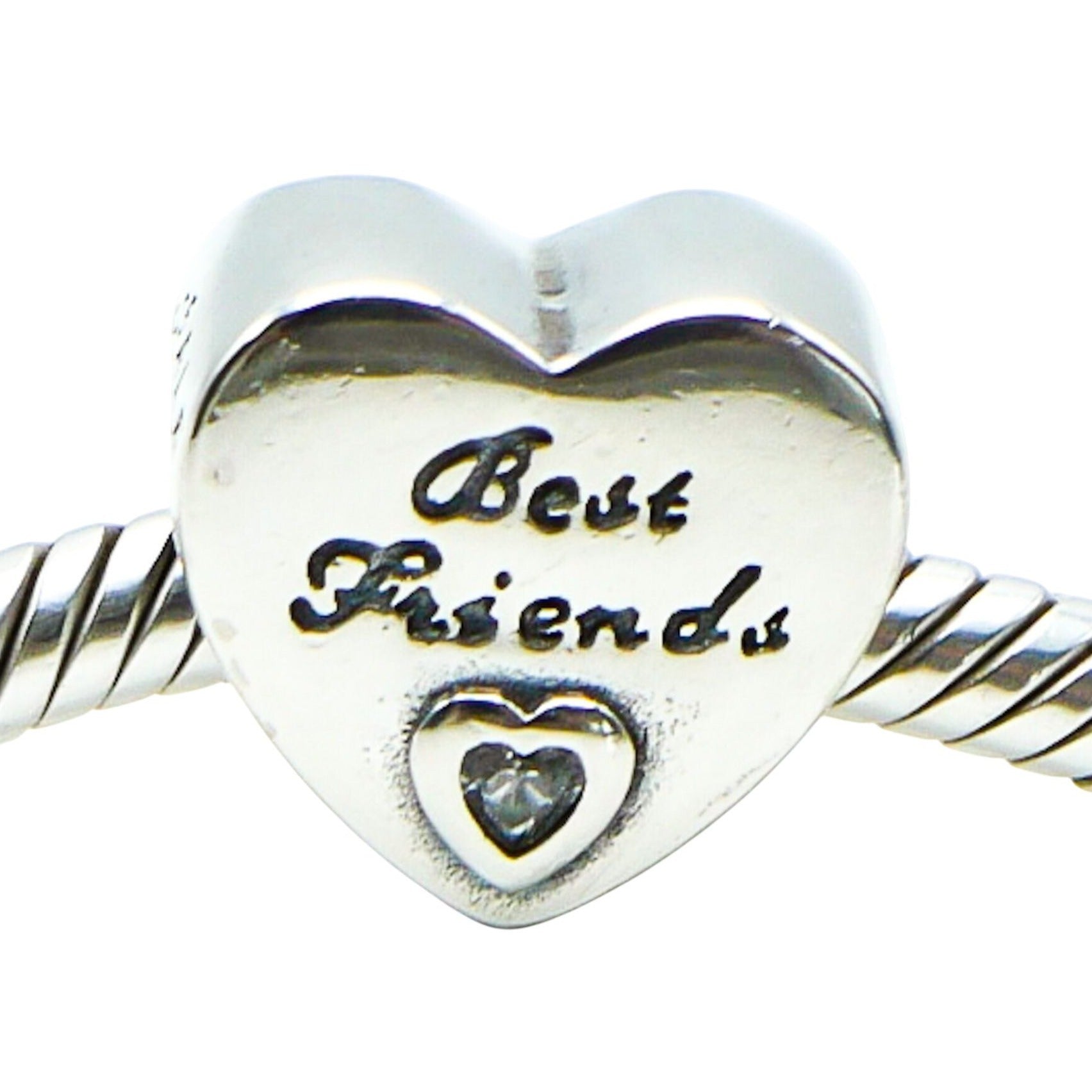 Authentic PANDORA Friendship Heart Sterling Silver Charm With Clear CZ 791727CZ - Retired. Share how much you care about that special person in your life with a beautiful silver heart adorned by heart-shaped clear cubic zirconia and the words "Best Friends" engraved above the CZ heart.