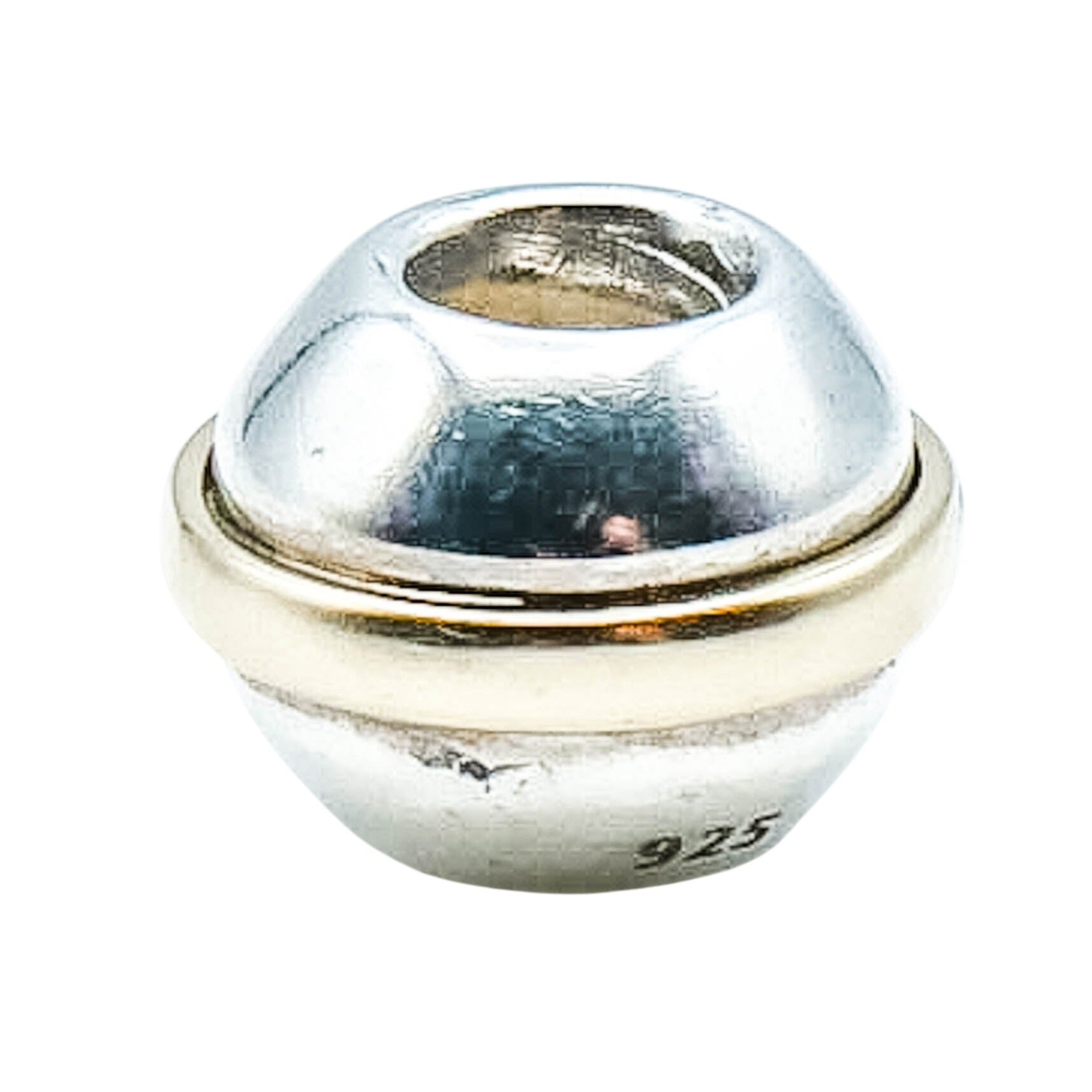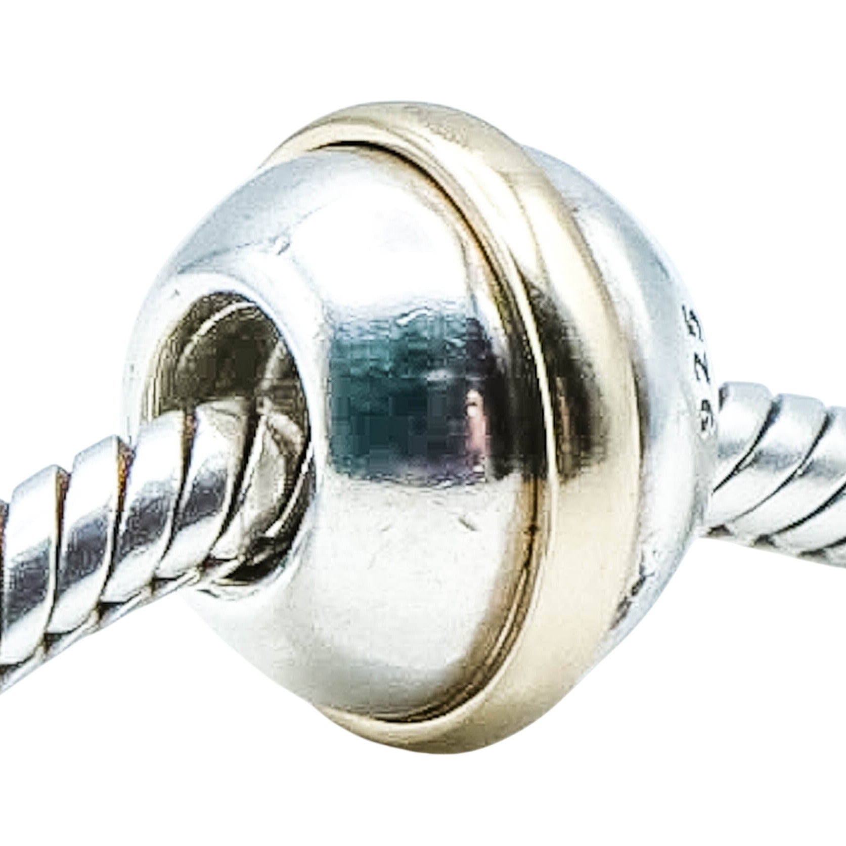 Authentic PANDORA Saturn 925 ALE Sterling Silver Charm With 14k Gold Ring 790178 - Retired. A sterling silver round bead surrounded by a 14k gold ring appears to look like the planet Saturn. It's two-tone design offers plenty of versatility to add to any gold or sterling silver bracelet.