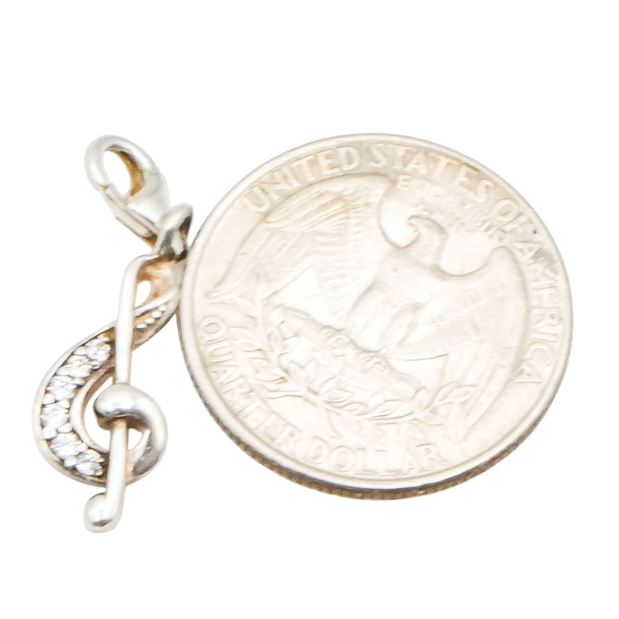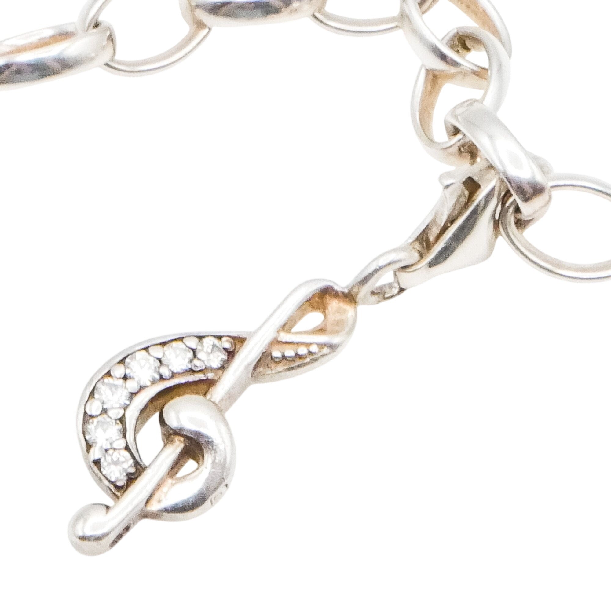 This elegant Thomas Sabo Charm Club piece features a beautifully sculpted treble clef crafted in sterling silver and accented with sparkling clear cubic zirconia. A timeless symbol of music and creativity, this retired charm is finished with a lobster clasp for easy styling.