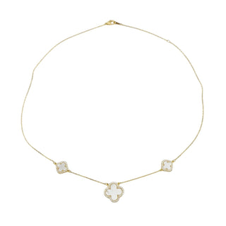 Rachel Zoe Sterling Silver Mother of Pearl Clover Necklace WIth Cubic Zirconia