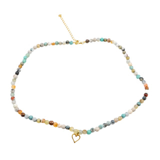 Essential Ritual Amazonite Beaded Heart Necklace Dainty Gemstone Layering Jewelry