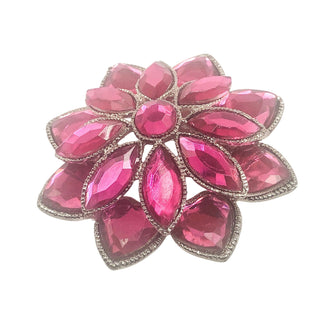 Vintage Silver Tone Flower Brooch With Faceted Pink Rhinestones